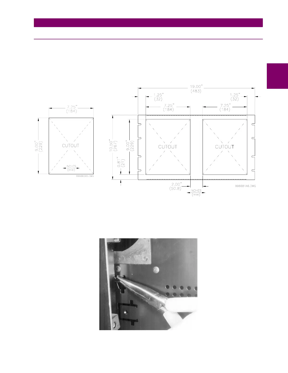 rack (see the diagram below for panel cutout dimensions). Provision must be made when mounting for the