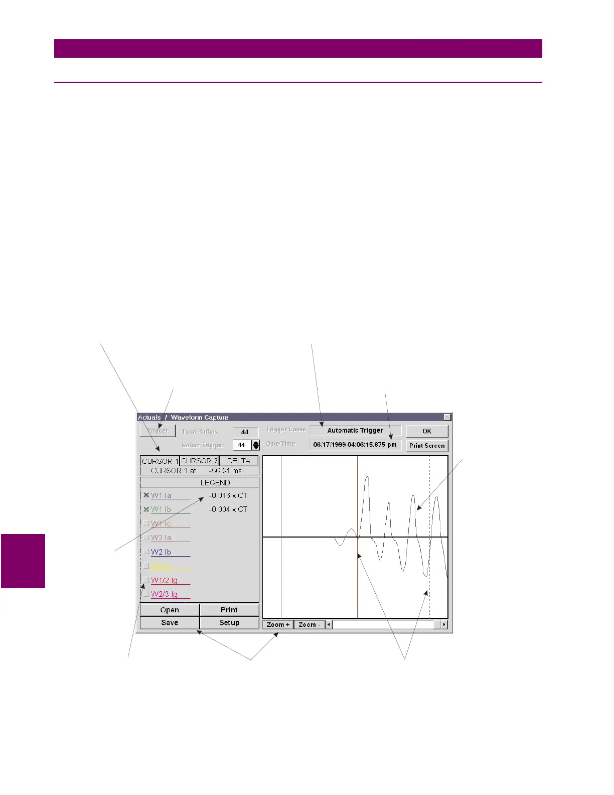 1. With 489PC running and communications established, select the Actual > Waveform Capture menu item to open the