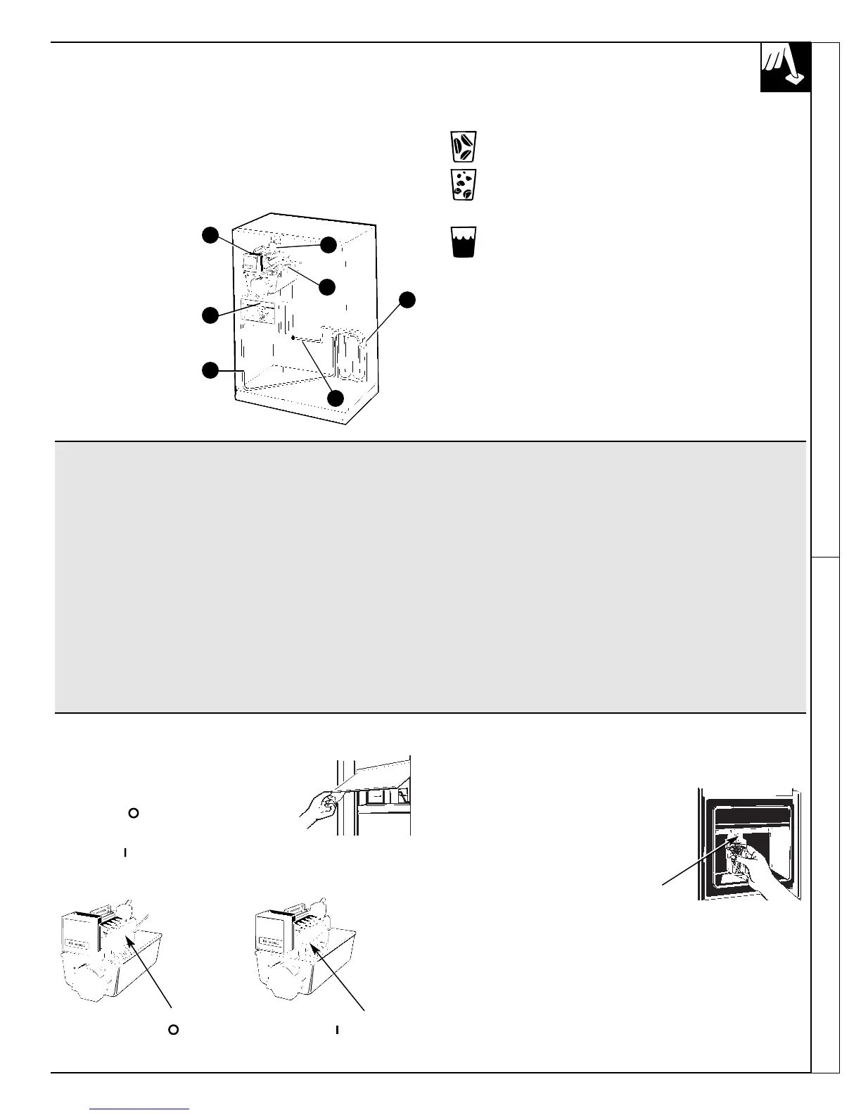 y de un dispensador que vierte agua, cubitos y hielo picado por