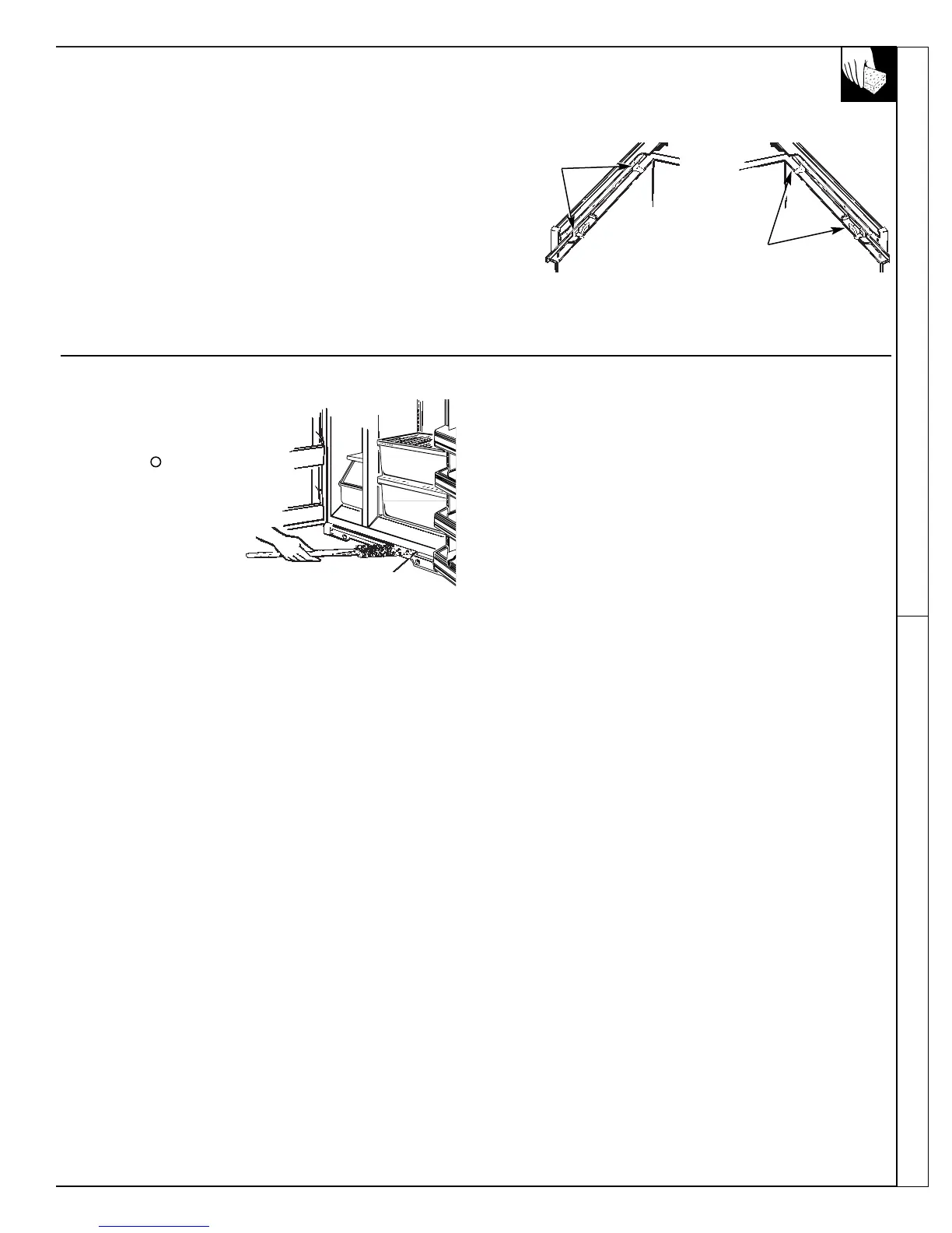 través de las guías de la gaveta del lado derecho o izquierdo