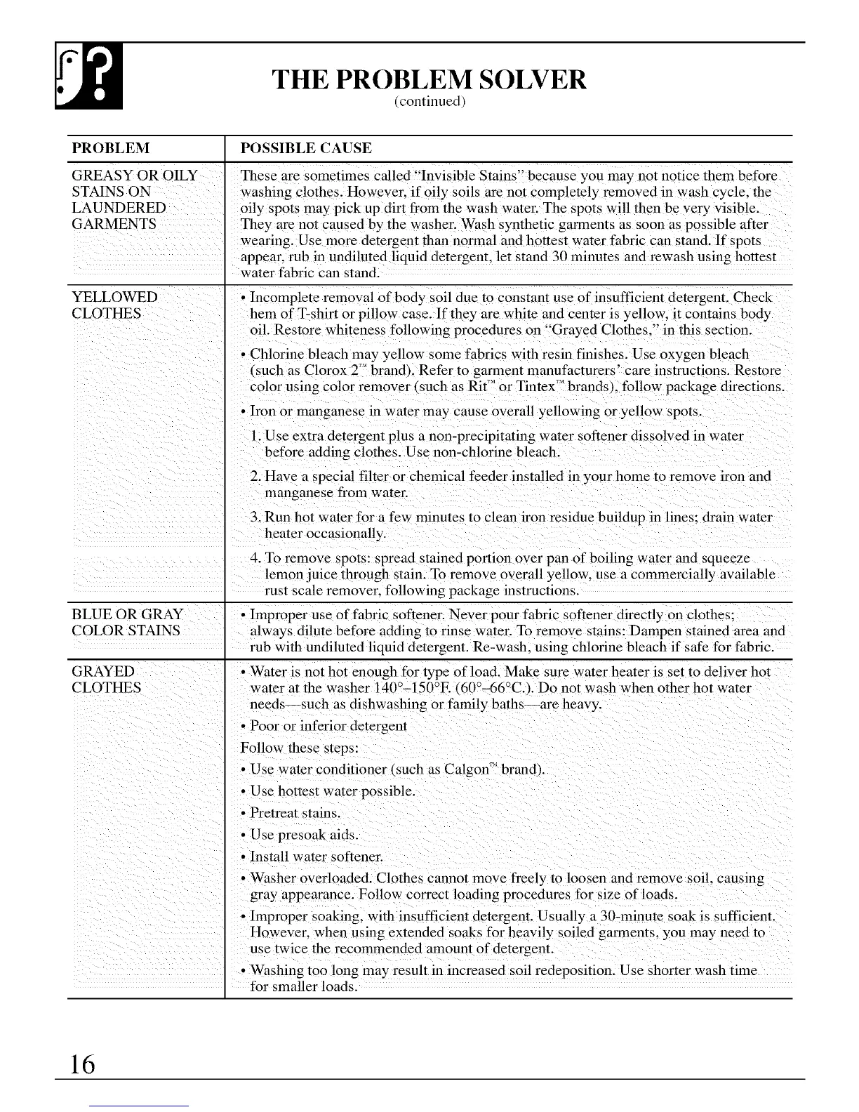 oil. Restore whiteness following procedures on "Grayed Clothes." in this section.