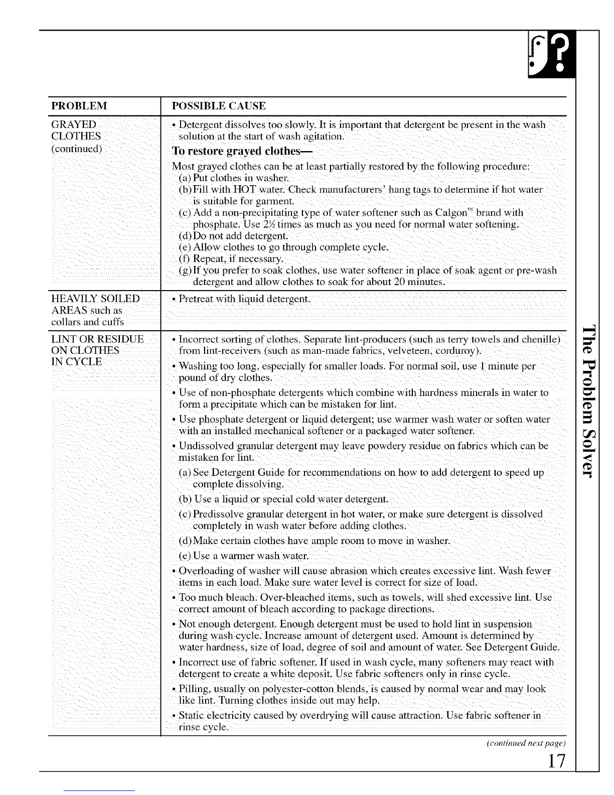 • Undissolved granular detergent may leave powdery residue on fabrics which can be