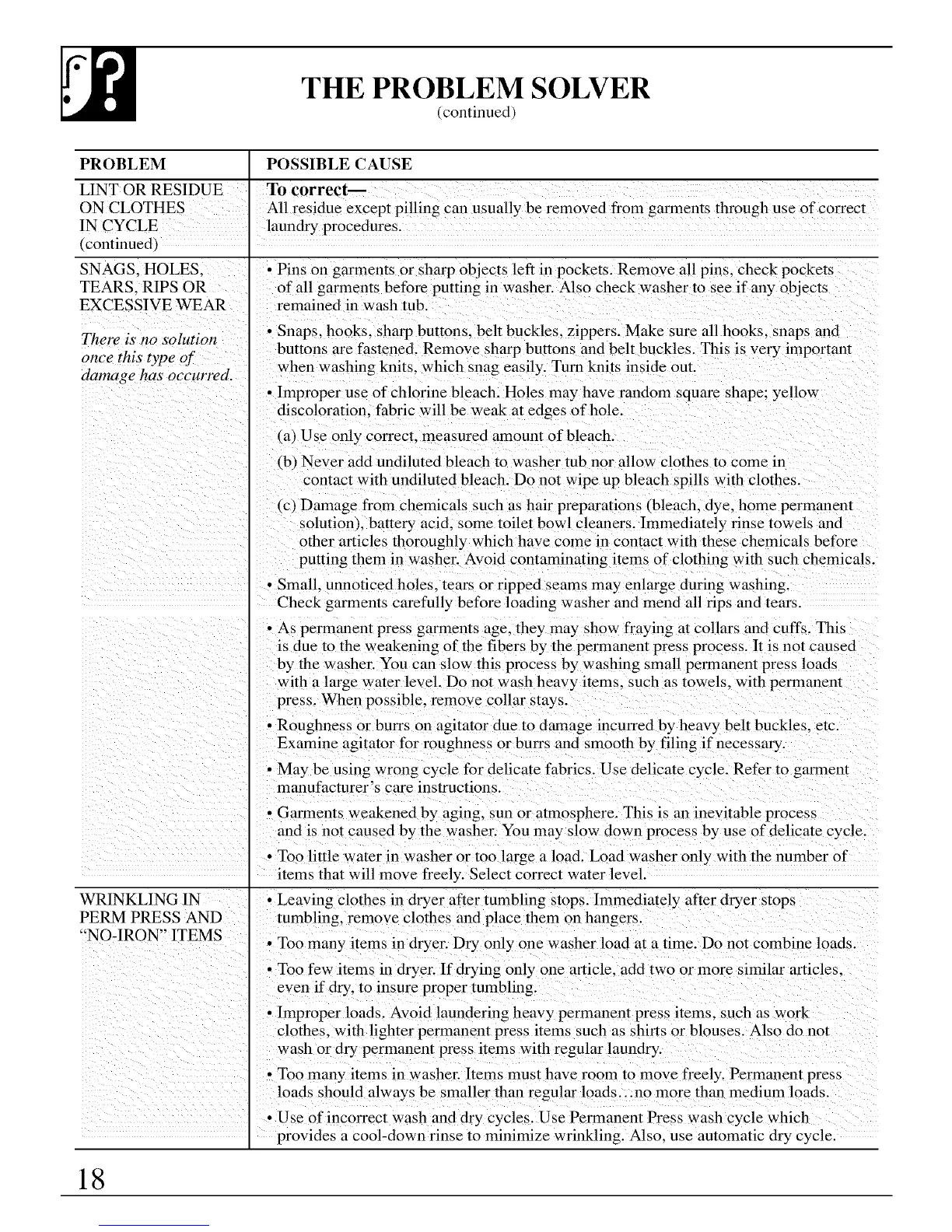 • Use of incorrect wash and dry cycles. Use Permanent Press wash cycle which