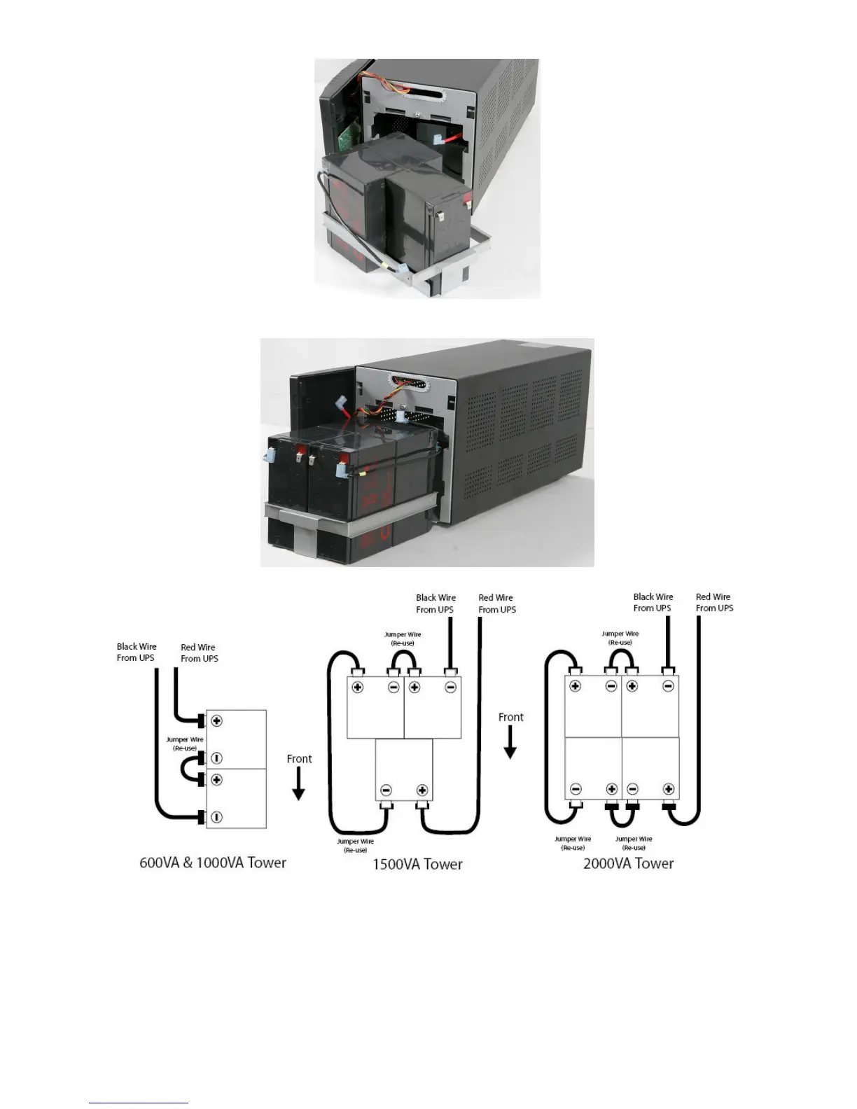 • 1500 & 2000VA – Connect the Black Wire on the - terminal as shown in diagrams above.