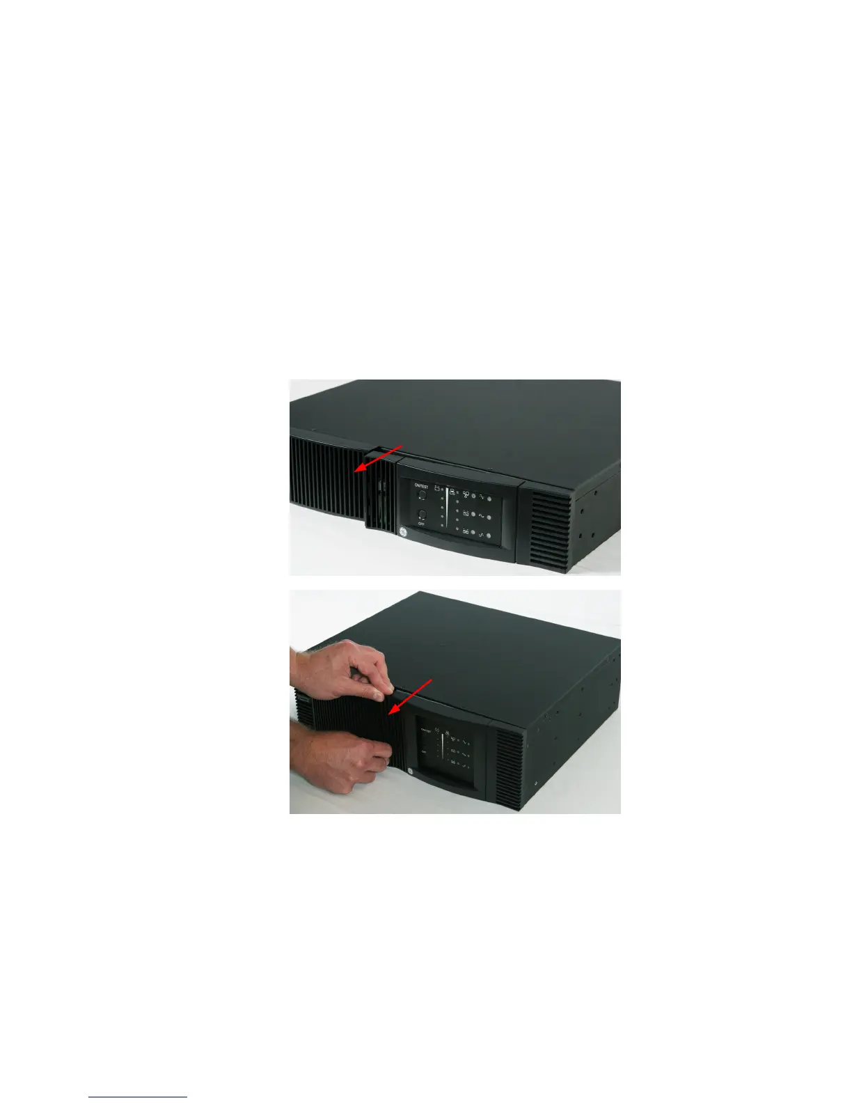 Step 1. Remove front cover panel; pull out from the middle left. (See diagrams below)