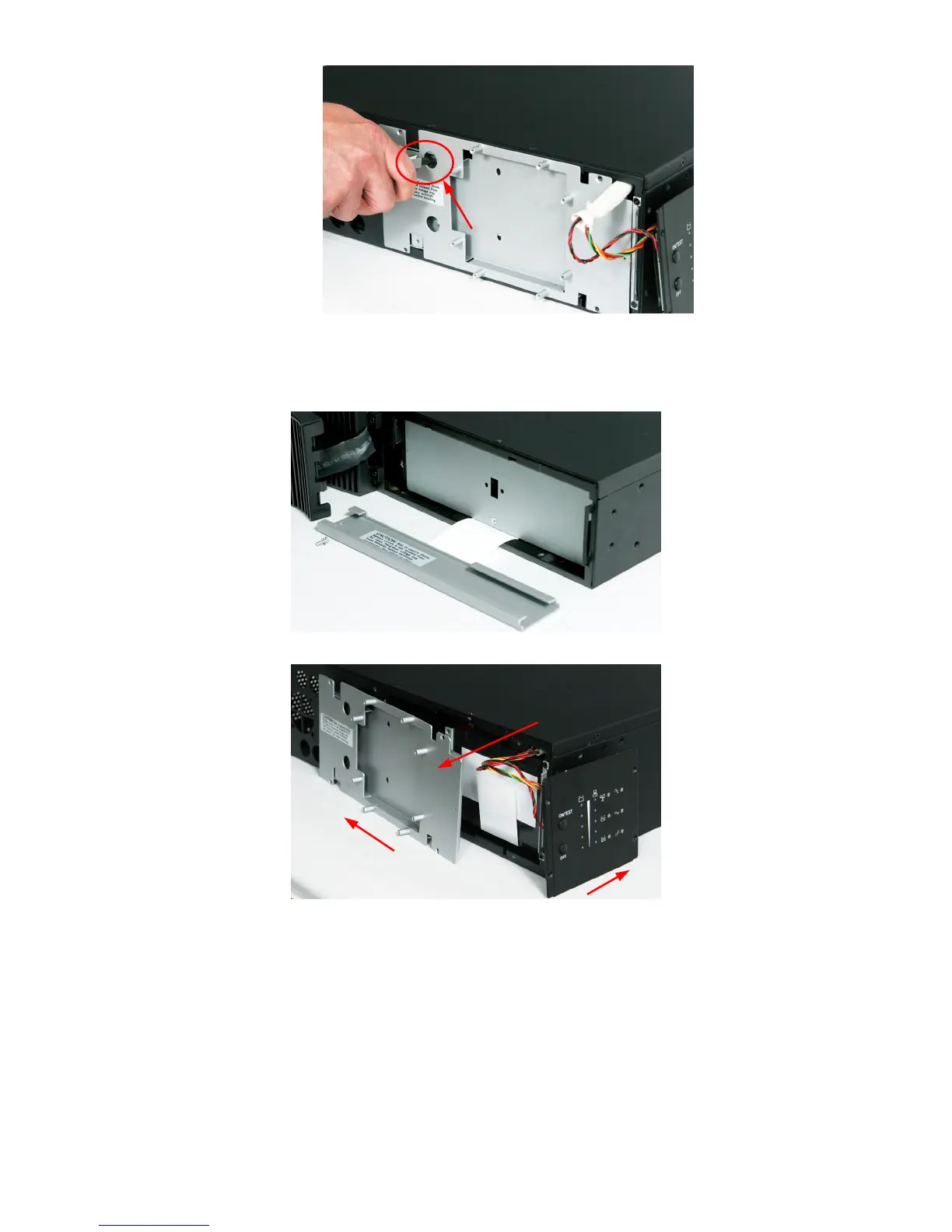 Step 5. Carefully slide batteries out. Pull tray to remove batteries. (See diagrams below)
