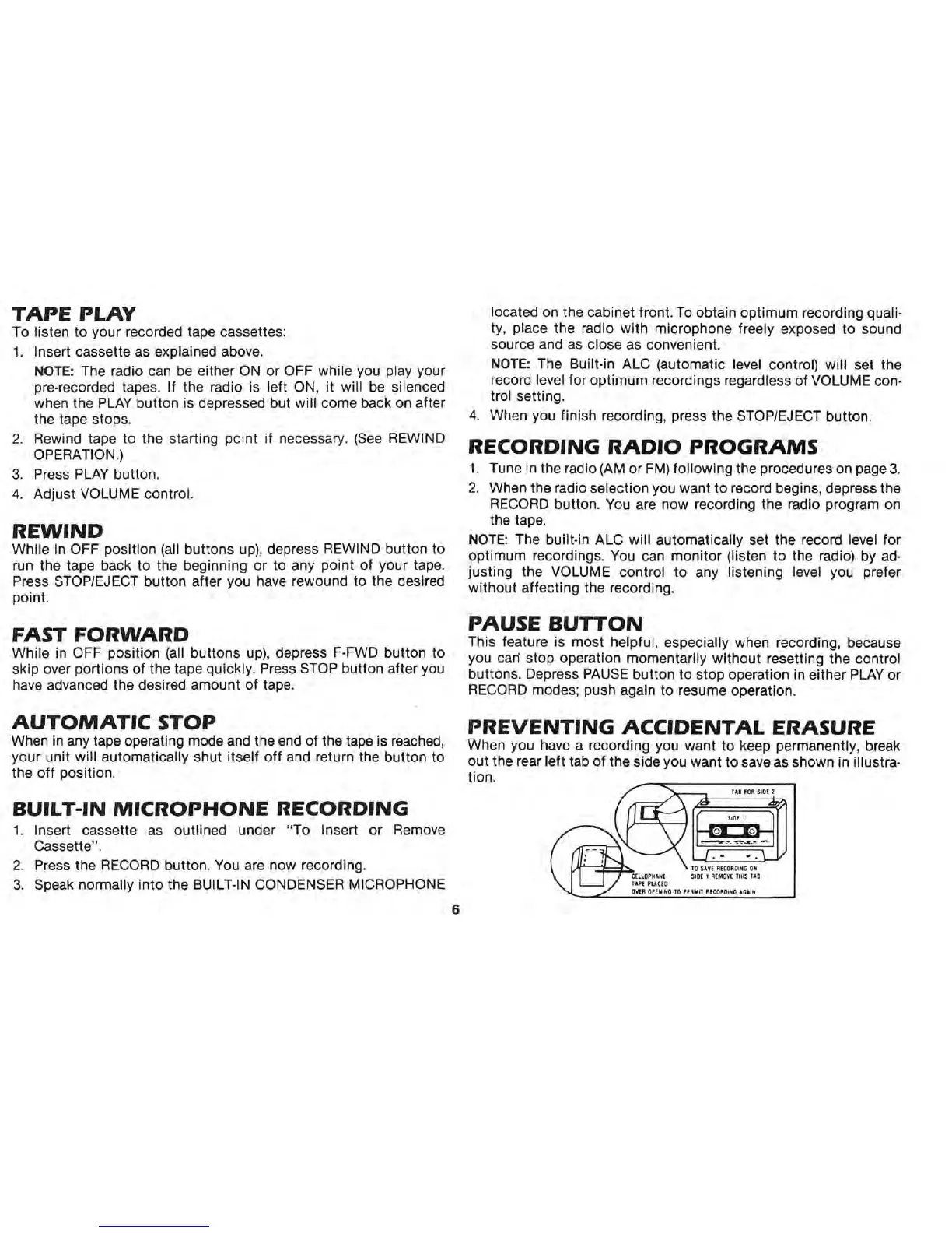 GE 7-4956 - Recording and Tape Management; Built-in Microphone Recording; Recording Radio Programs