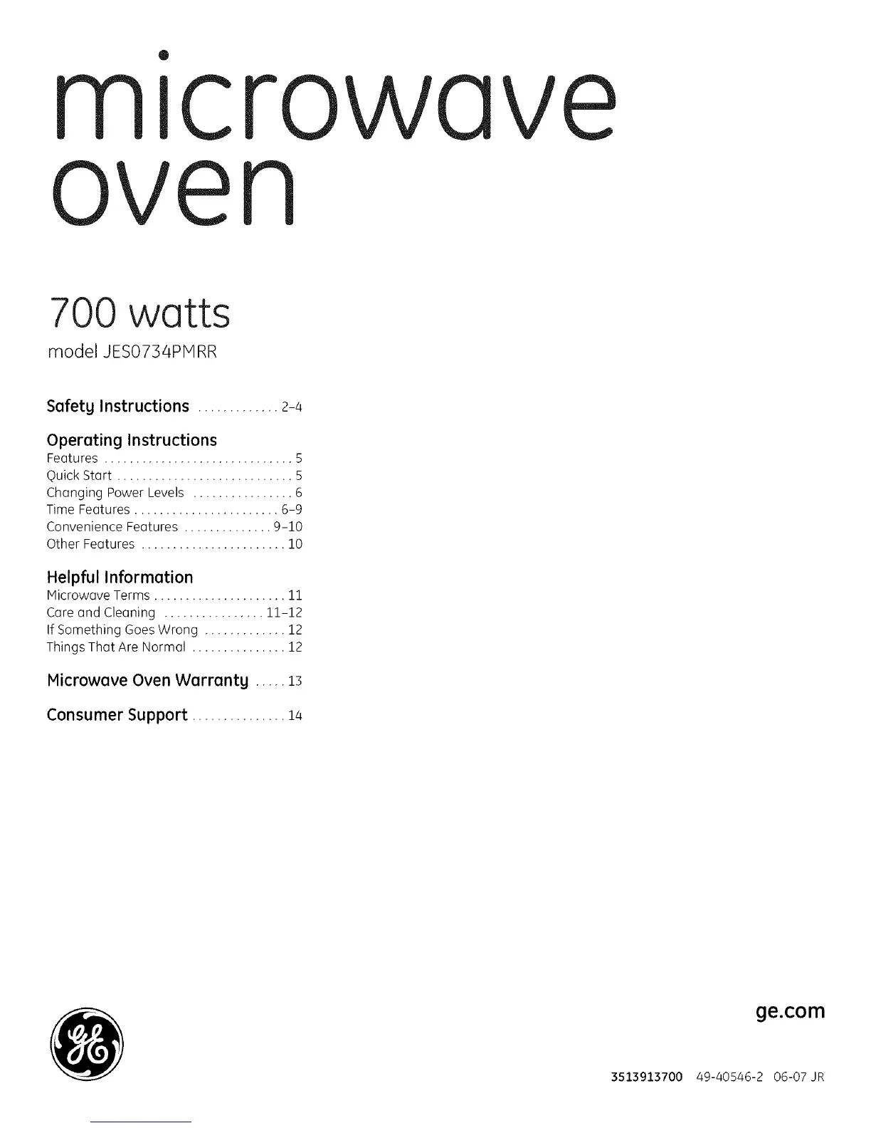 Microwave Oven Warrantg ..... 13