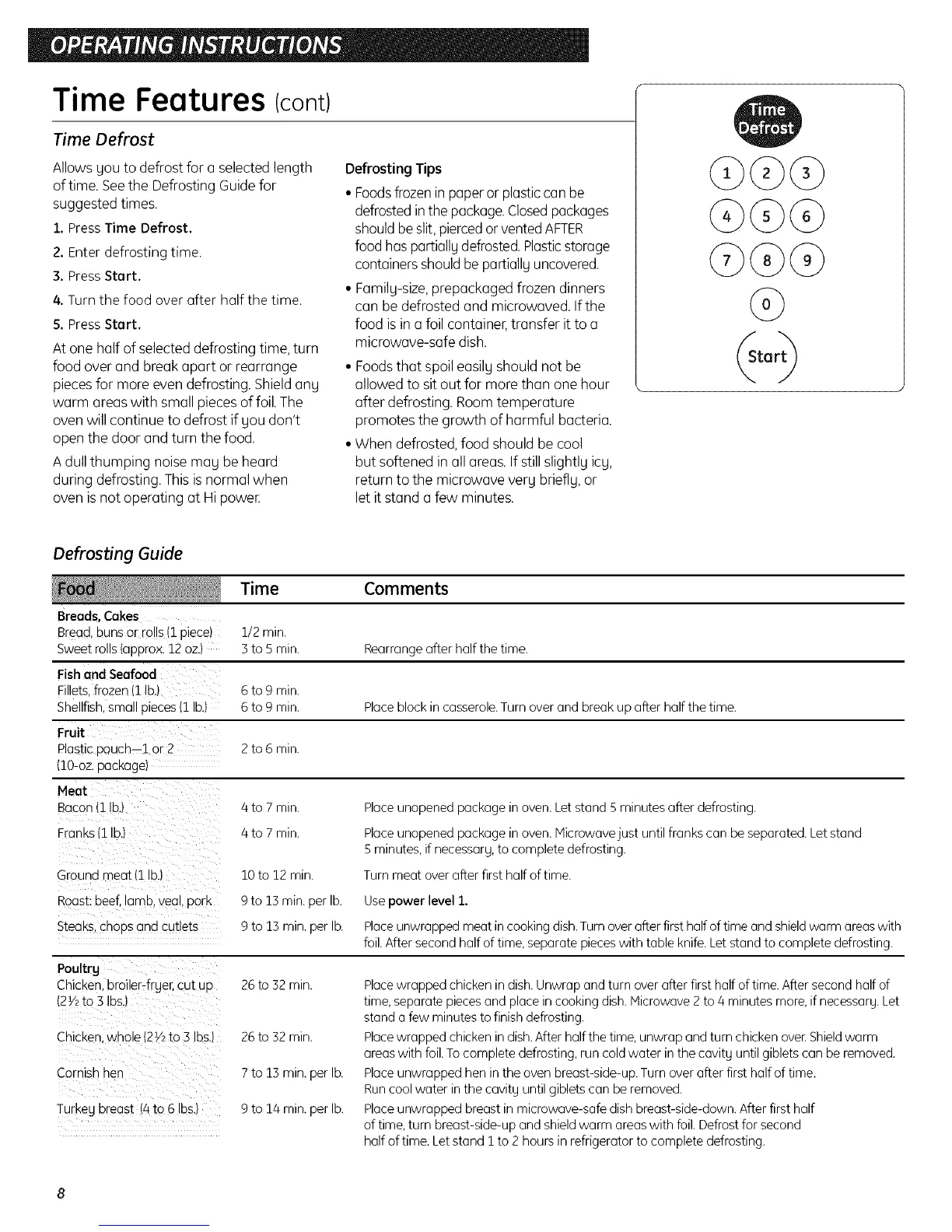 of time. See the Defrosting Guide for