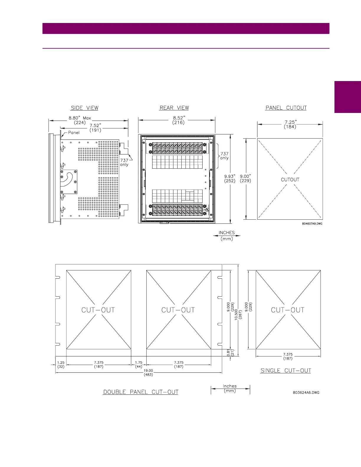 ified. The figure below shows the physical dimensions of the 735/737. A single cutout in the panel, as per the dimensions of