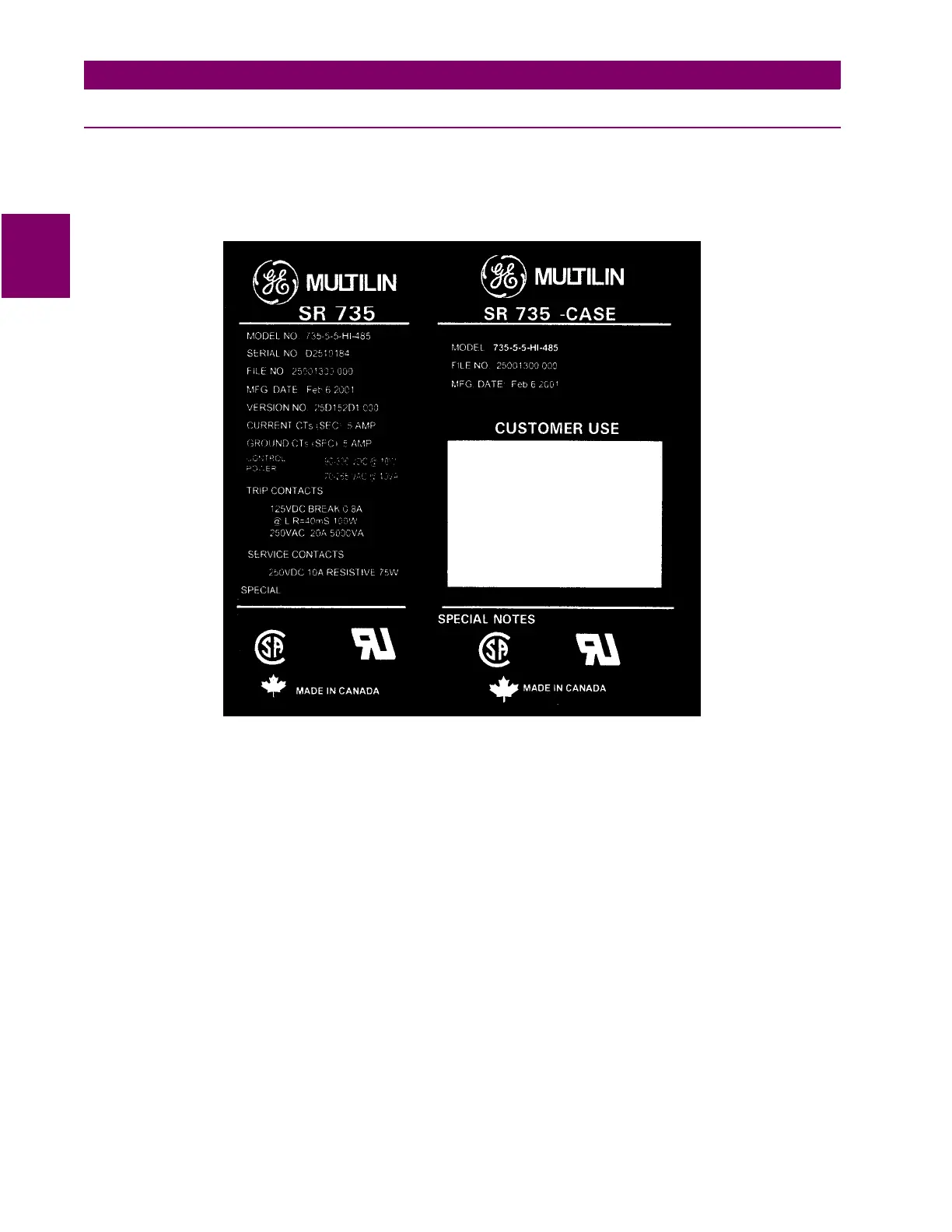 1. MODEL NO: The model number shows the configuration of the relay including phase CTs, ground CT, power supply