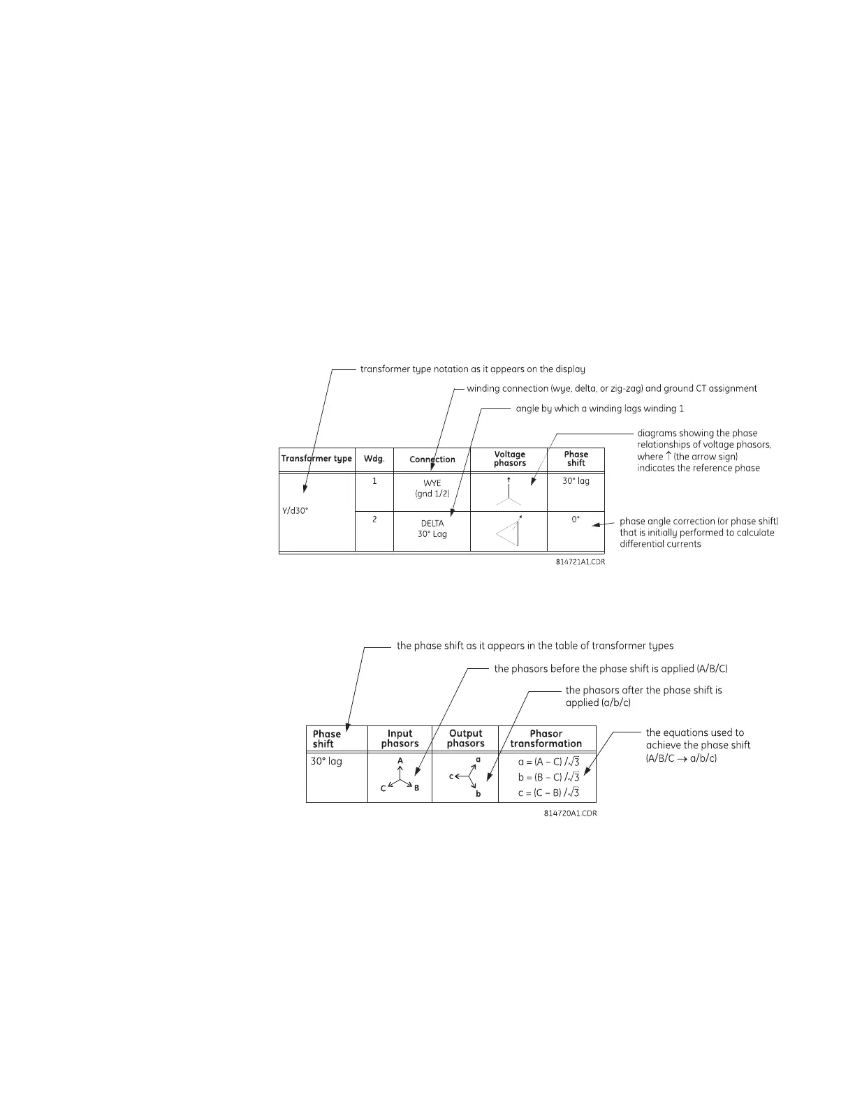 phase current phasors of winding 1 by 30°. With CTs connected in a wye arrangement