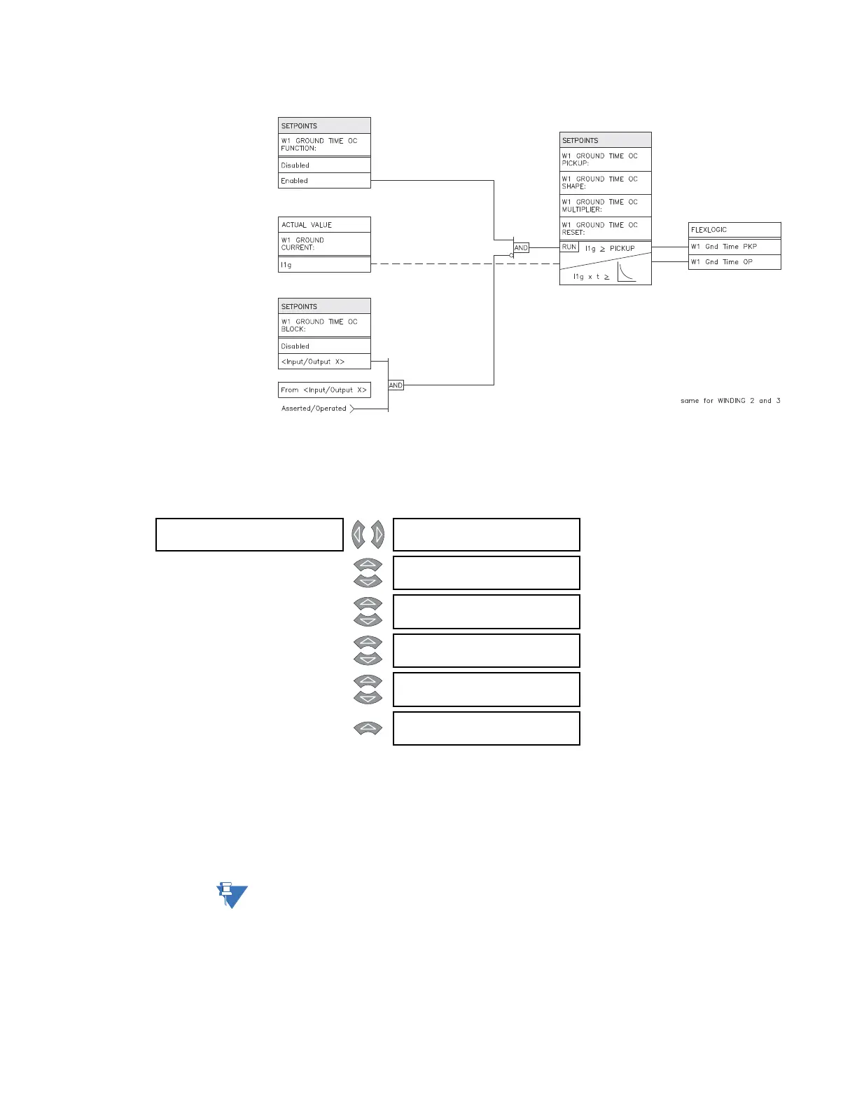 • W1(3) GROUND INST OC 1(2) DELAY: Enter the time that the ground current must