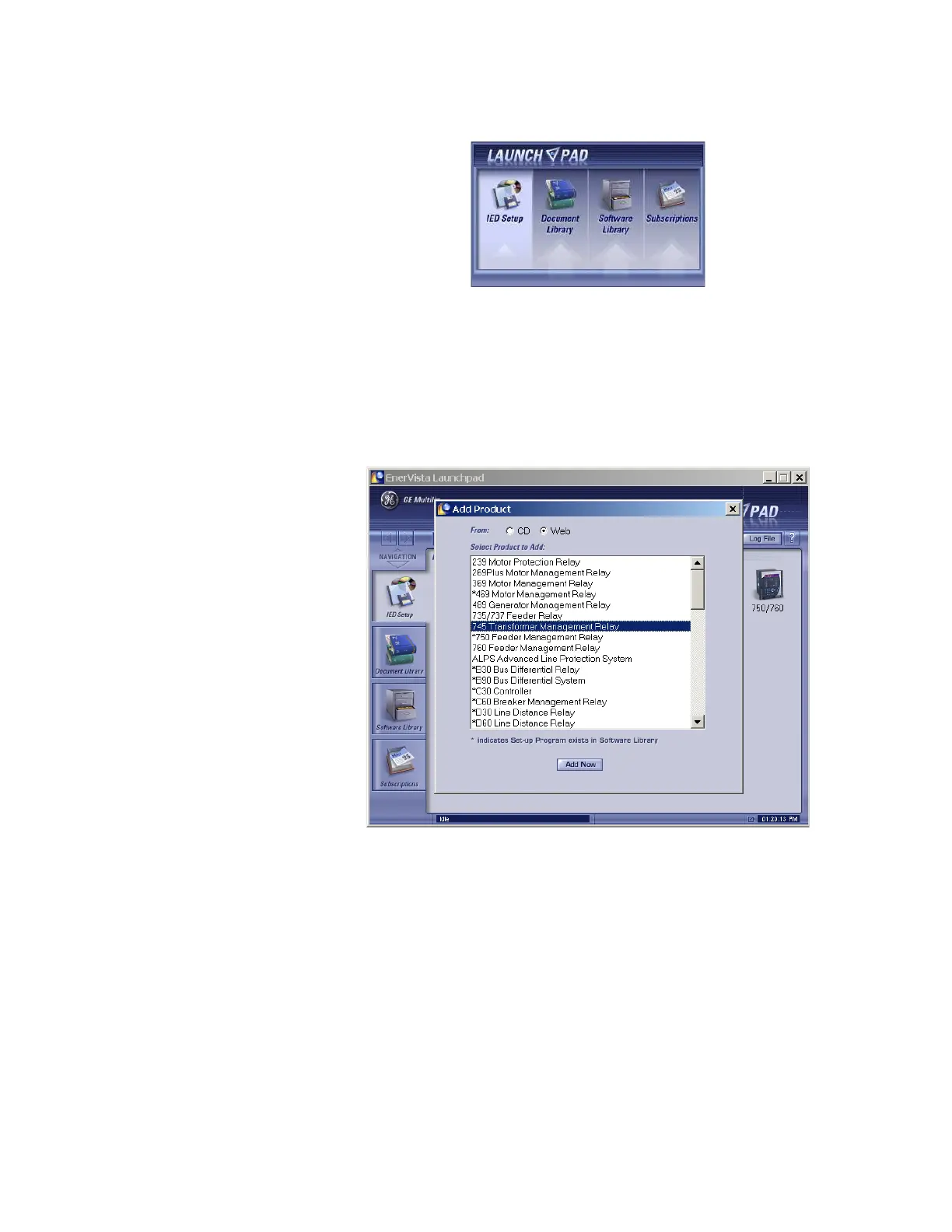 In the EnerVista Launch Pad window, click the Add Product button.