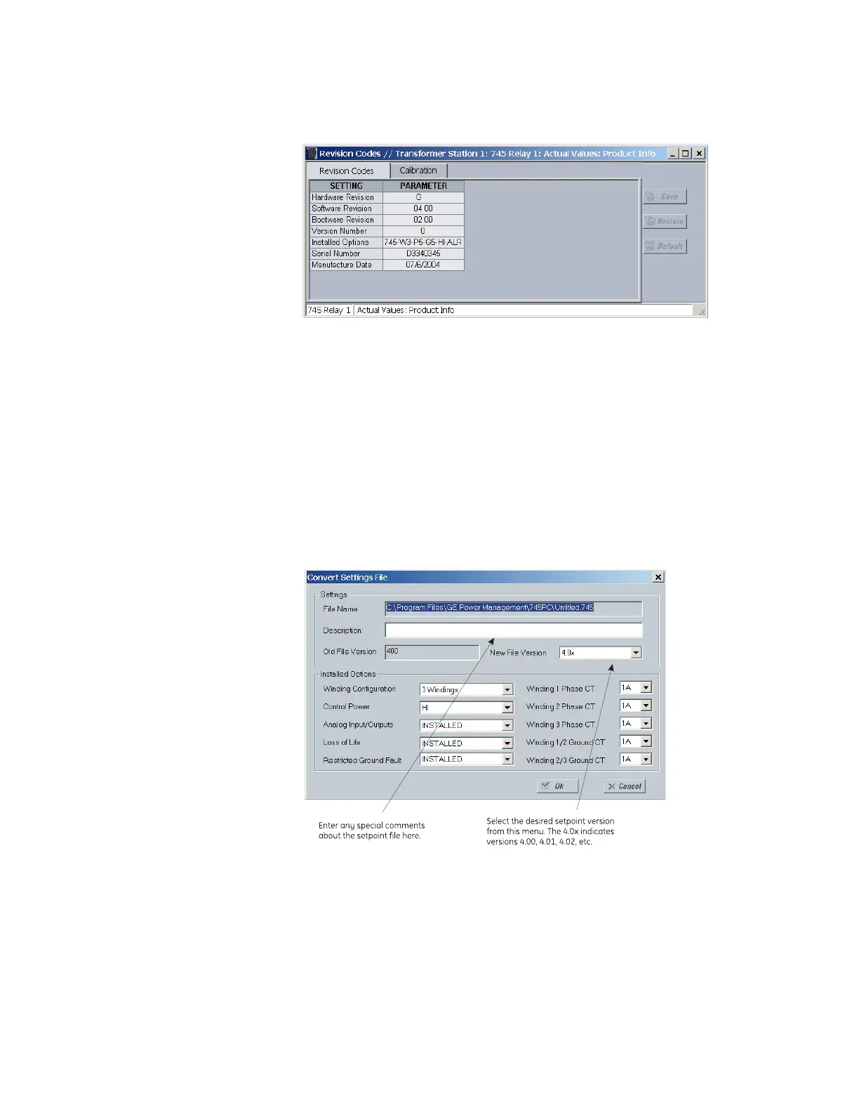 revision is 4.00, change the setpoint file revision to “4.0X”, as shown