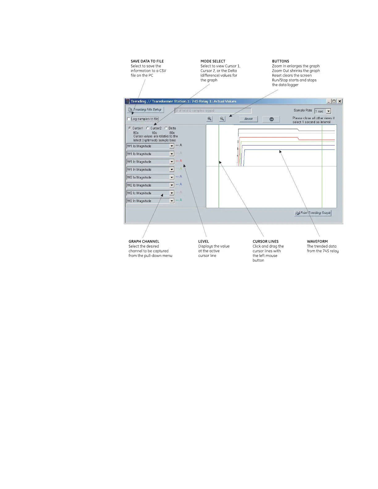 During the process of data logging, the trending screen appears as shown below.