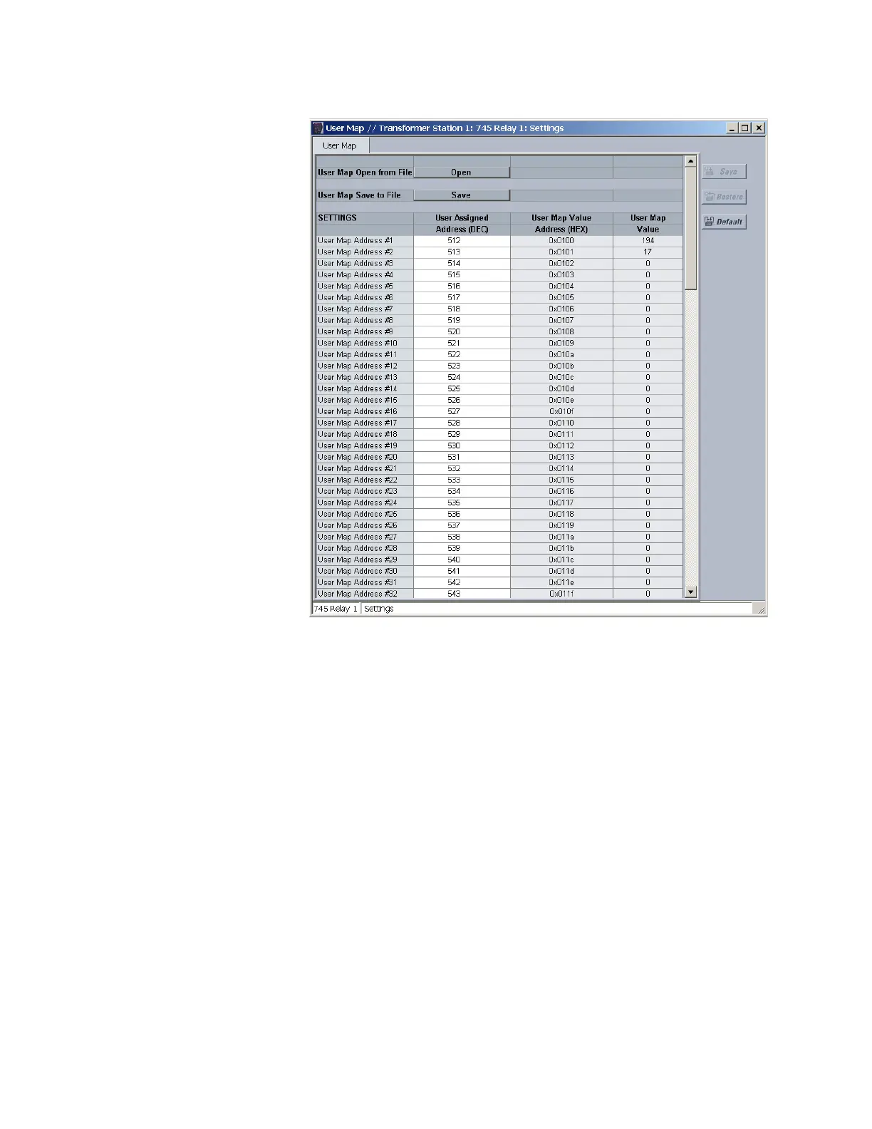 This window allows the desired addresses to be written to User Map locations. The User
