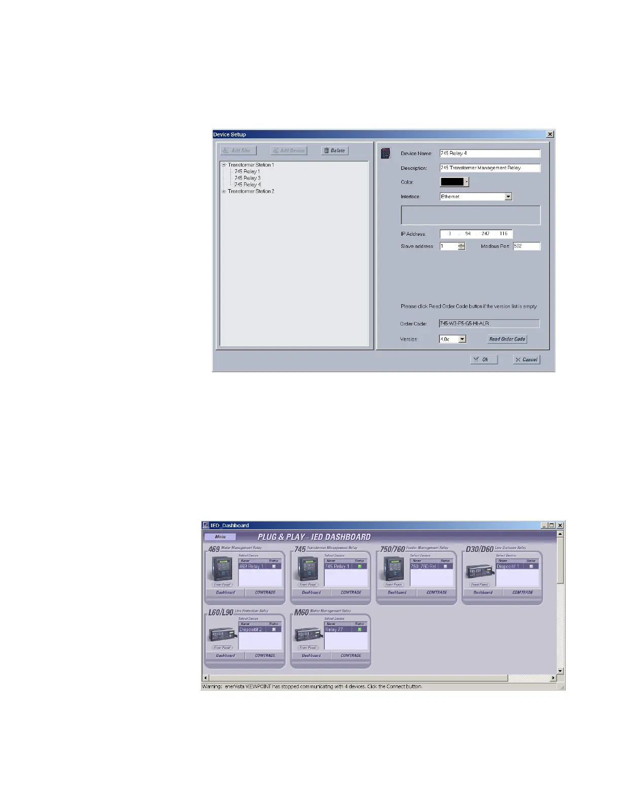 From the EnerVista main window, select the IED Dashboard item to
