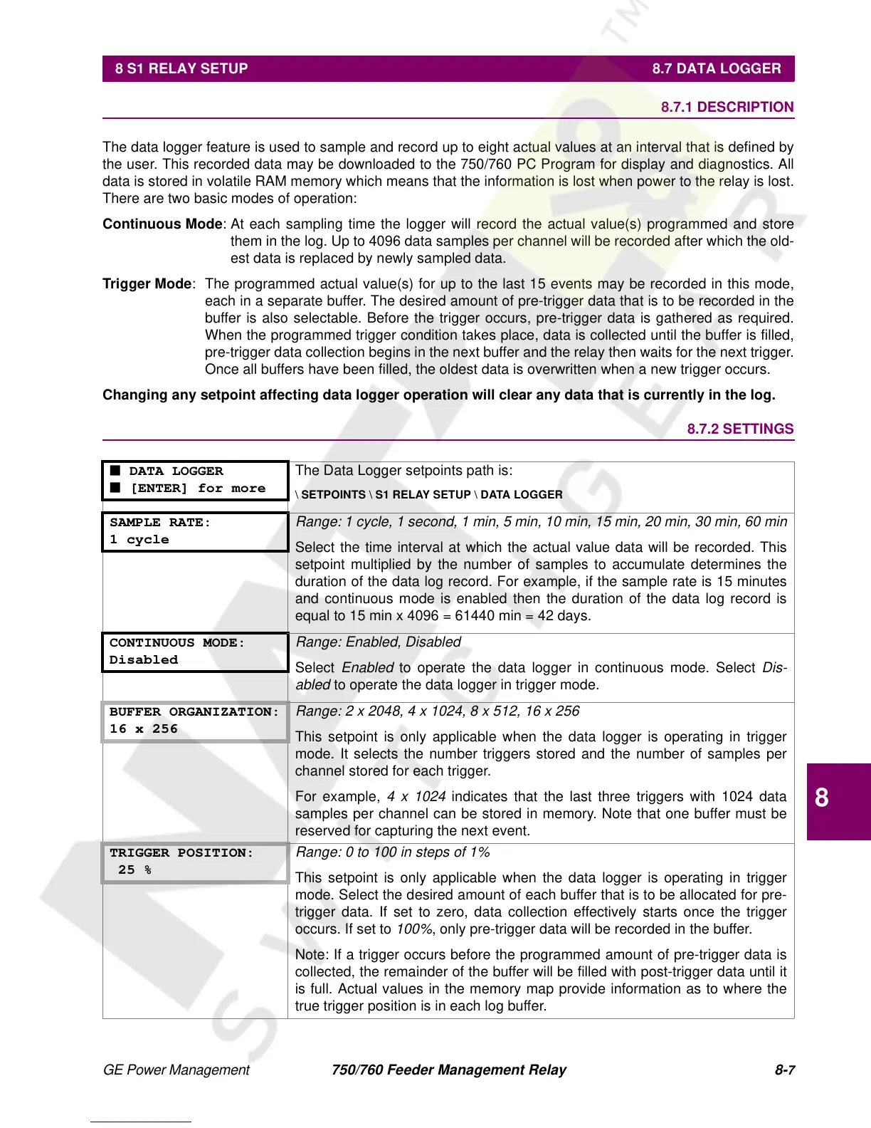 8.7 DATA LOGGER 8.7.1 DESCRIPTION