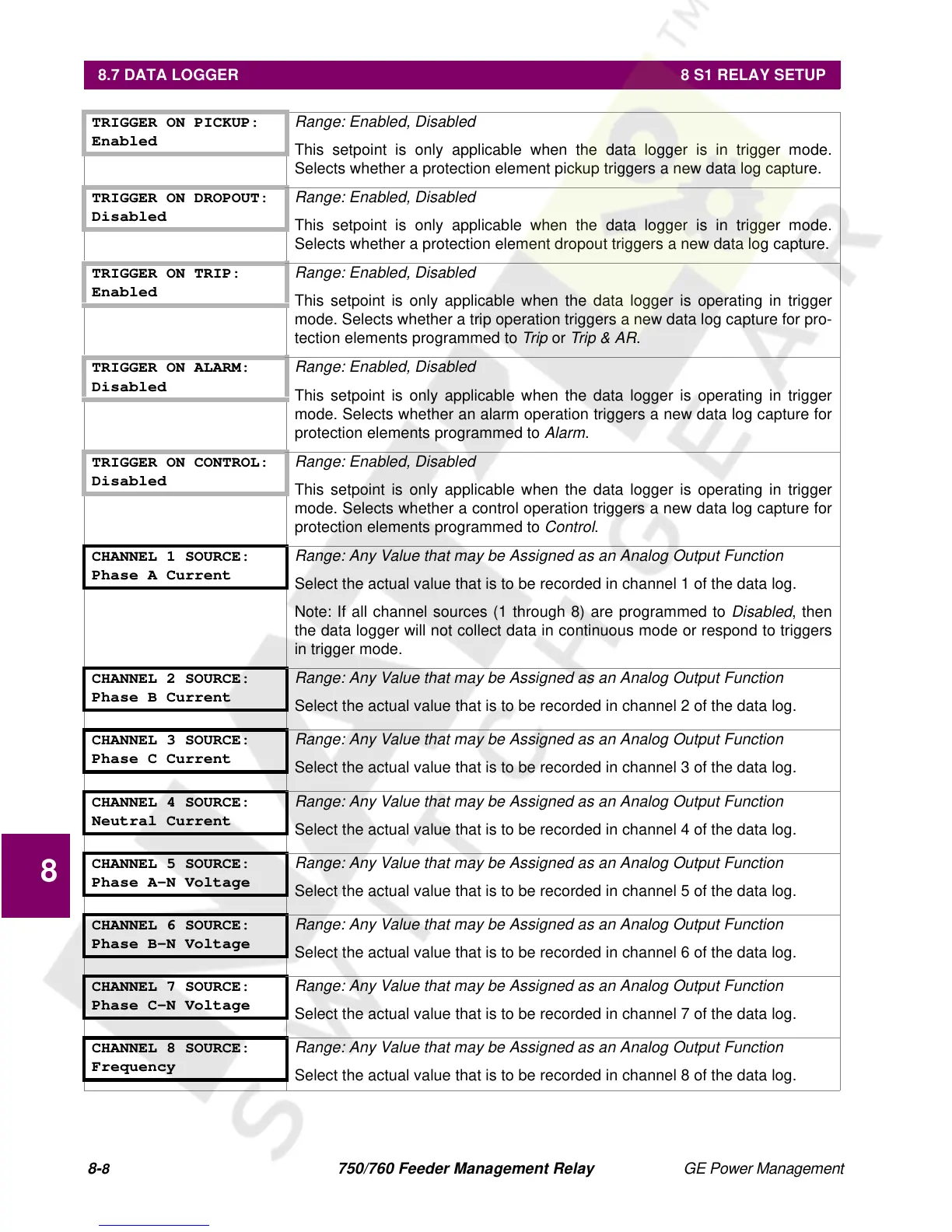 8.7 DATA LOGGER 8 S1 RELAY SETUP