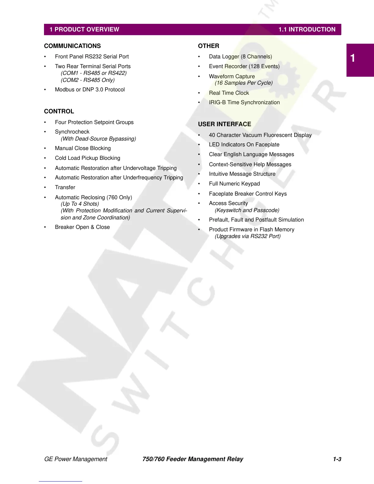 GE Power Management 750/760 Feeder Management Relay 1-