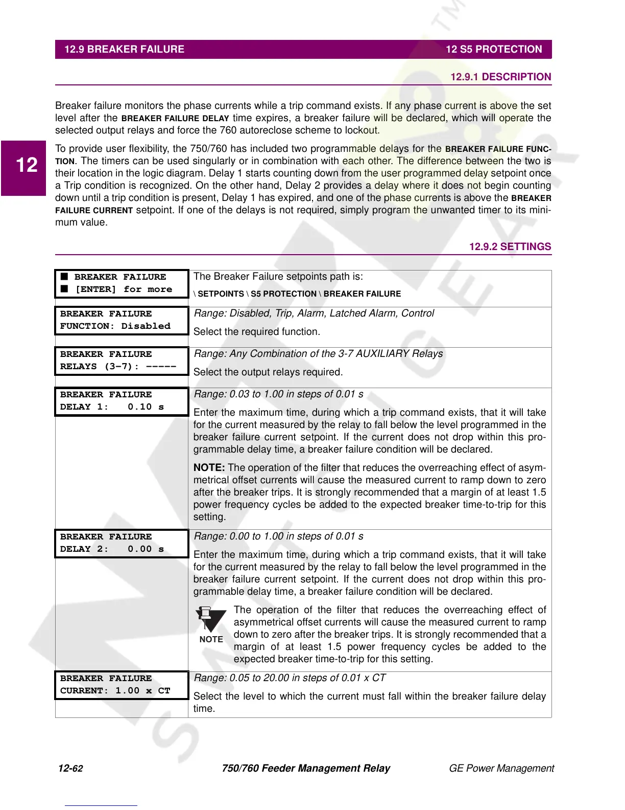 12.9 BREAKER FAILURE 12.9.1 DESCRIPTION
