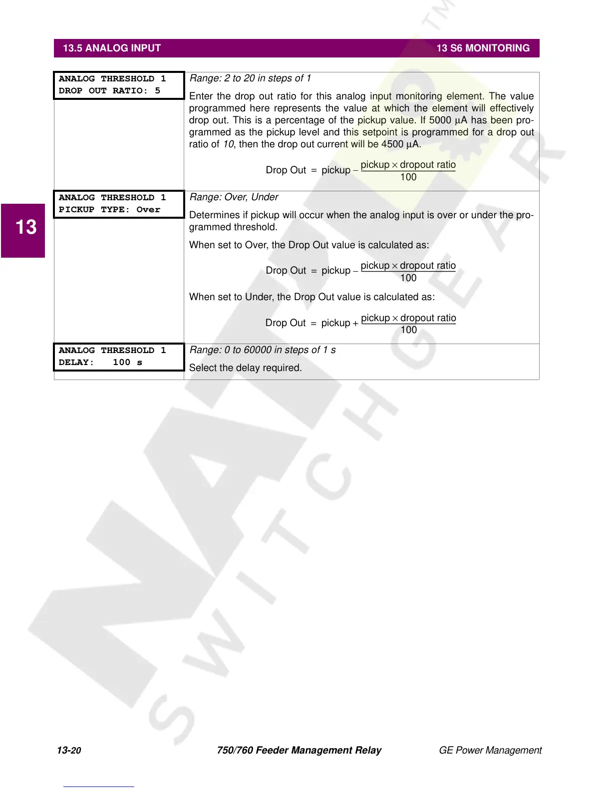 13.5 ANALOG INPUT 13 S6 MONITORING