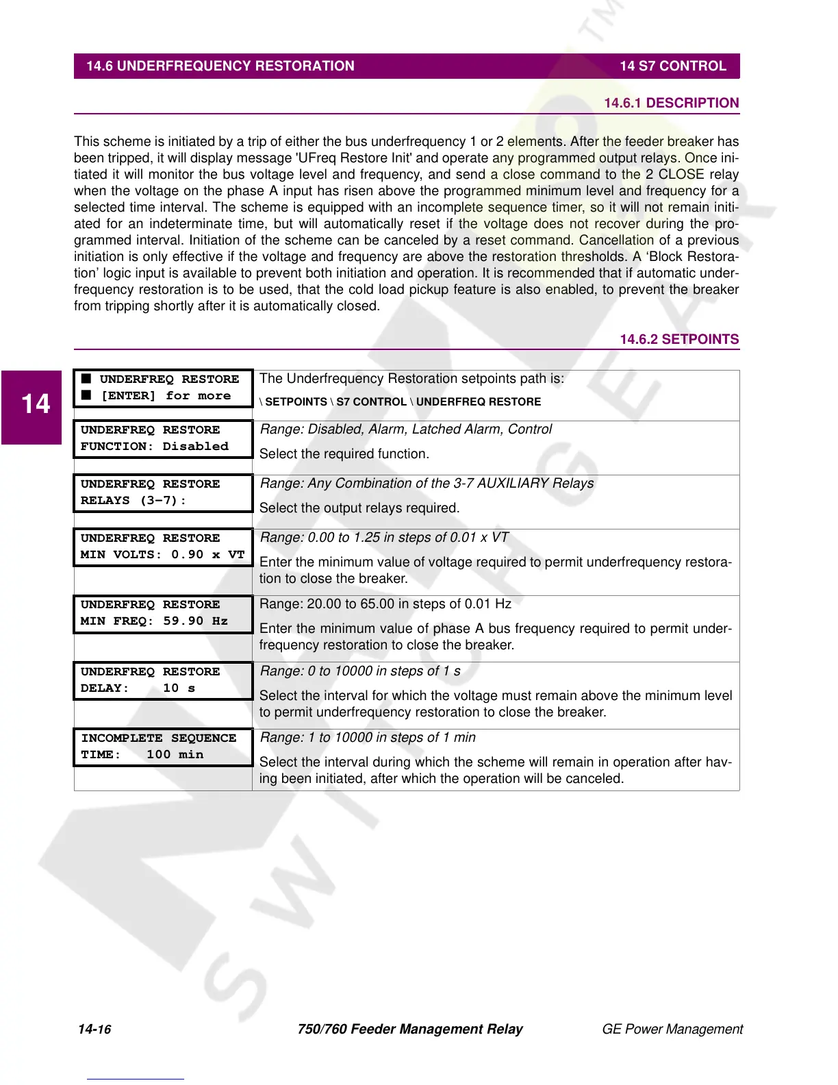 14.6 UNDERFREQUENCY RESTORATION 14.6.1 DESCRIPTION