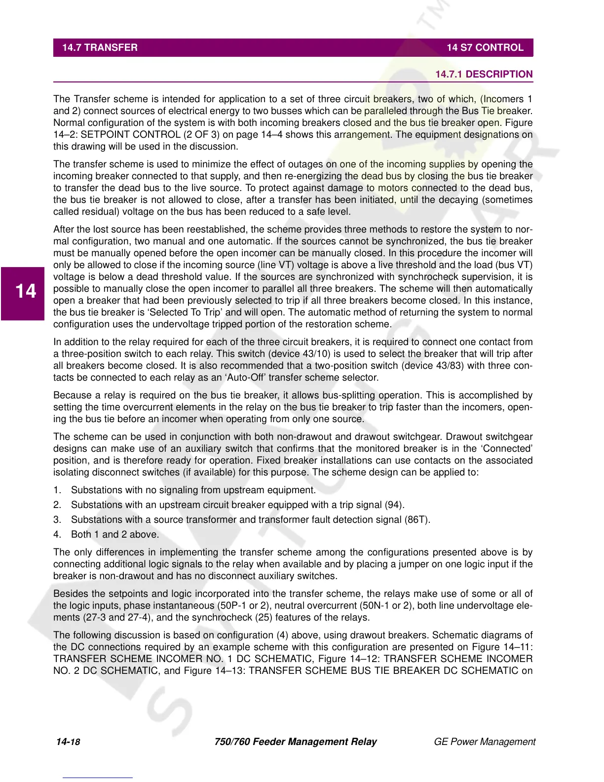 Besides the setpoints and logic incorporated into the transfer scheme, the relays make use of some or all of