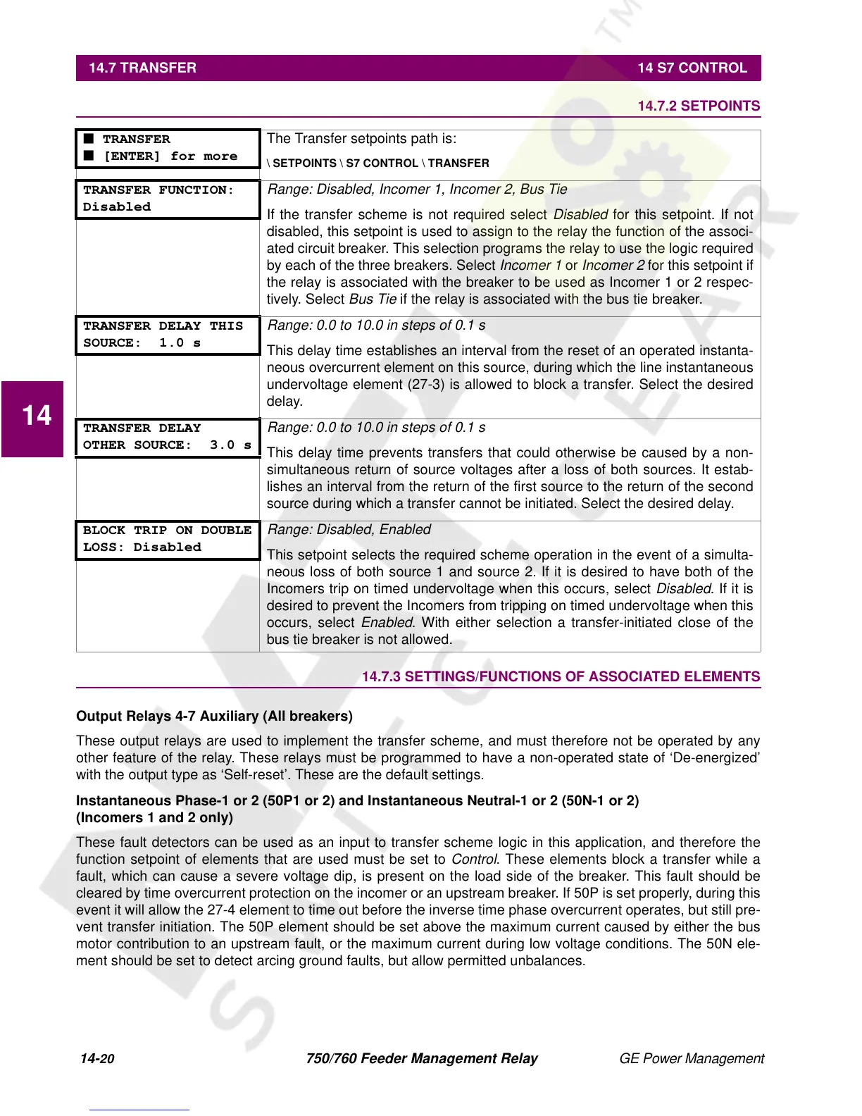 These output relays are used to implement the transfer scheme, and must therefore not be operated by any