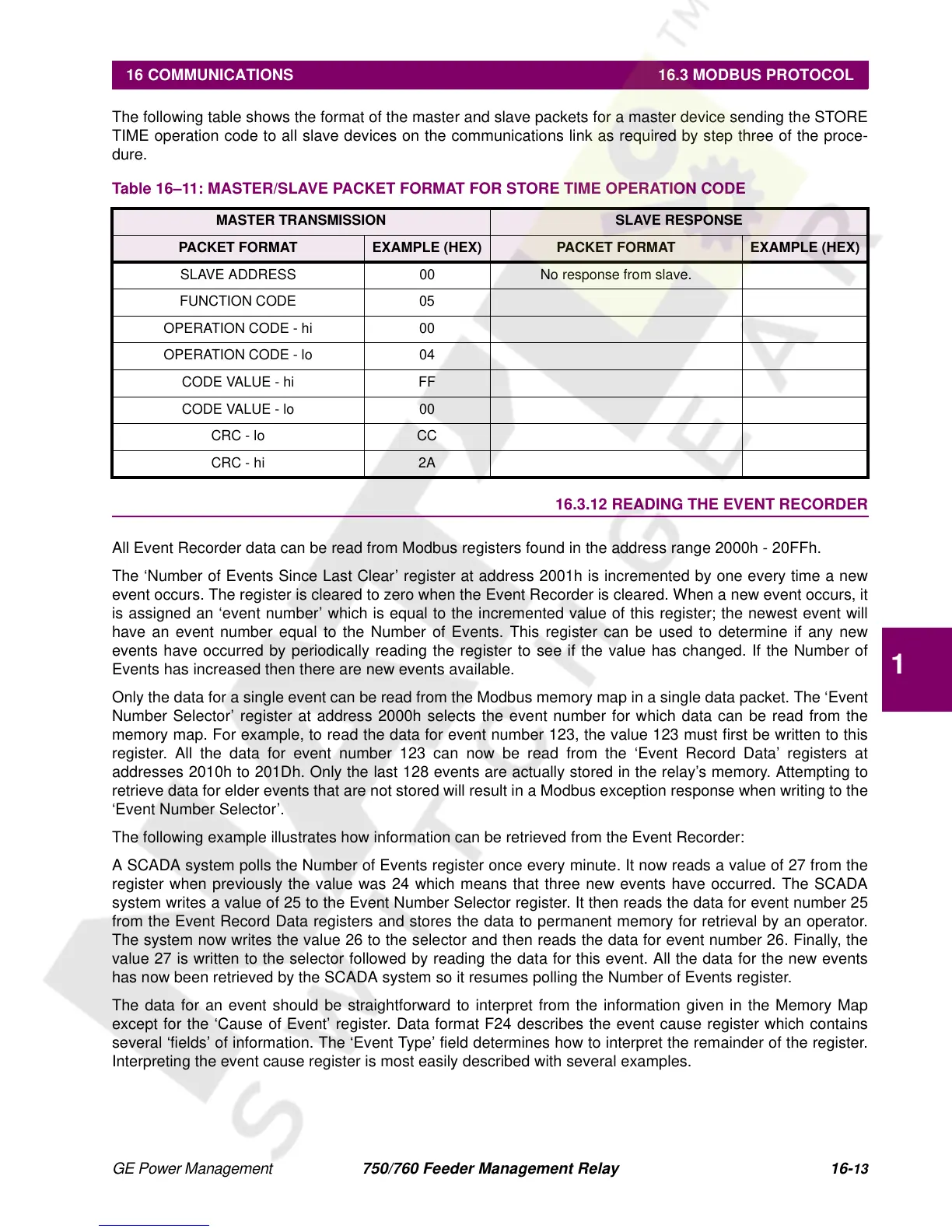 16 COMMUNICATIONS 16.3 MODBUS PROTOCOL