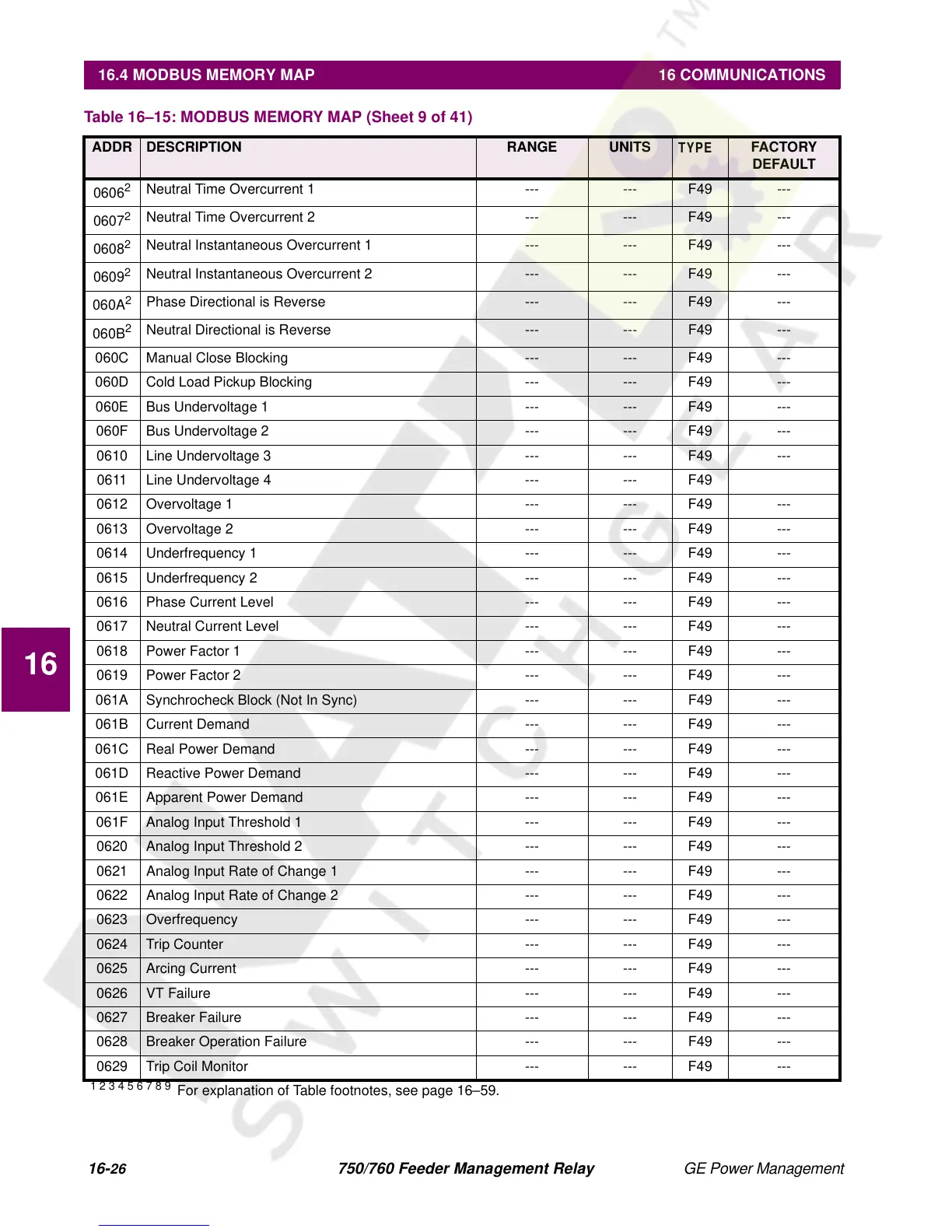 16.4 MODBUS MEMORY MAP 16 COMMUNICATIONS