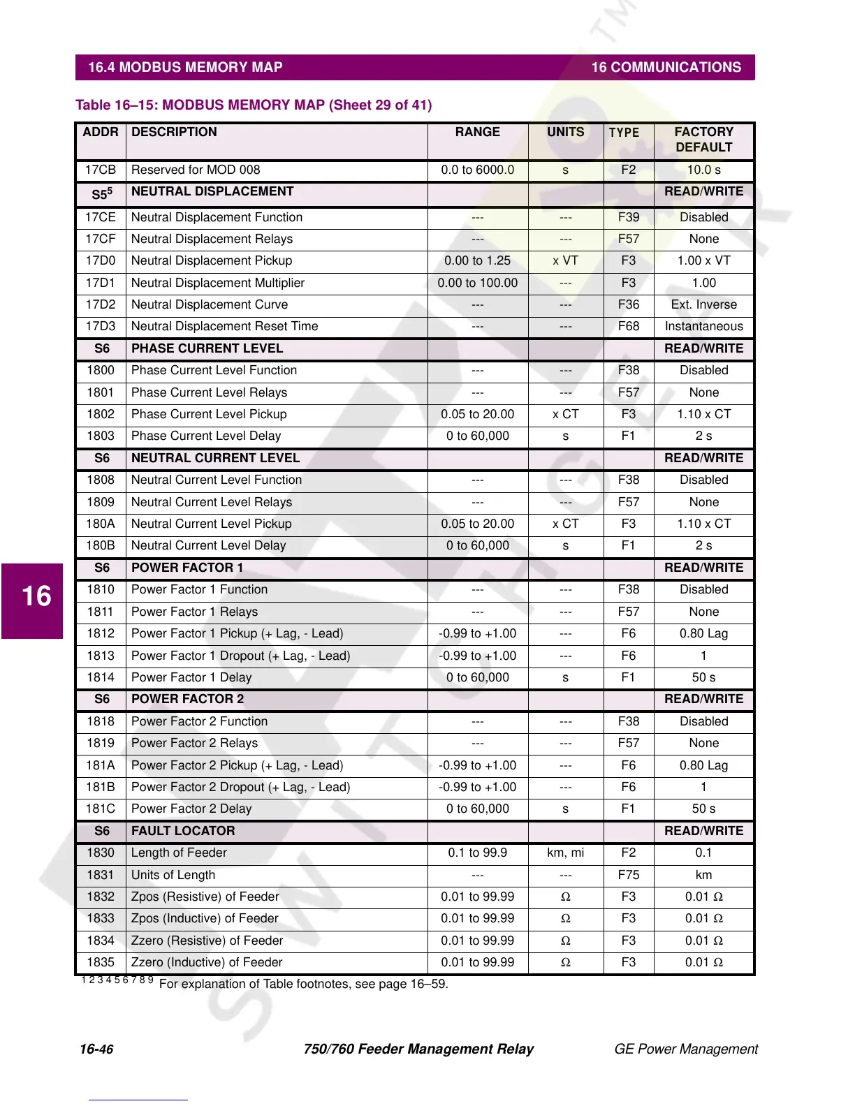 16.4 MODBUS MEMORY MAP 16 COMMUNICATIONS