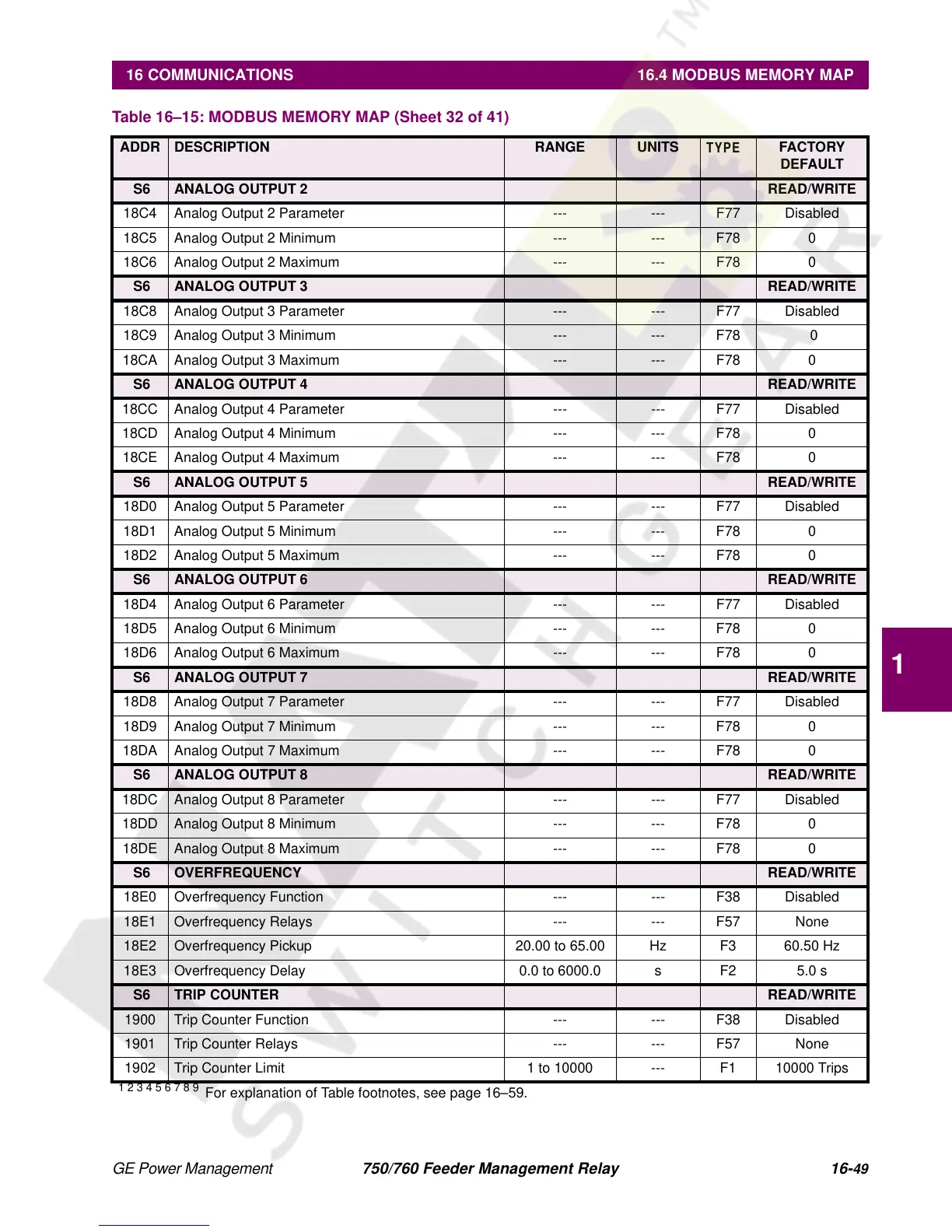 Table 16ā15: MODBUS MEMORY MAP (Sheet 32 of 41)