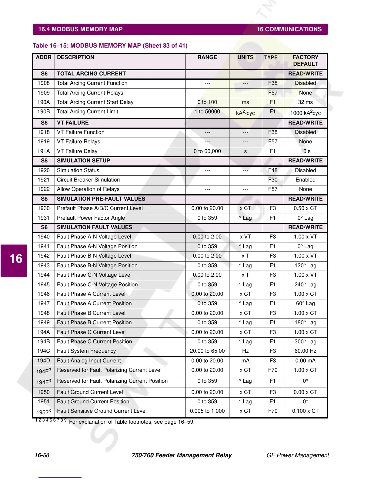 16.4 MODBUS MEMORY MAP 16 COMMUNICATIONS