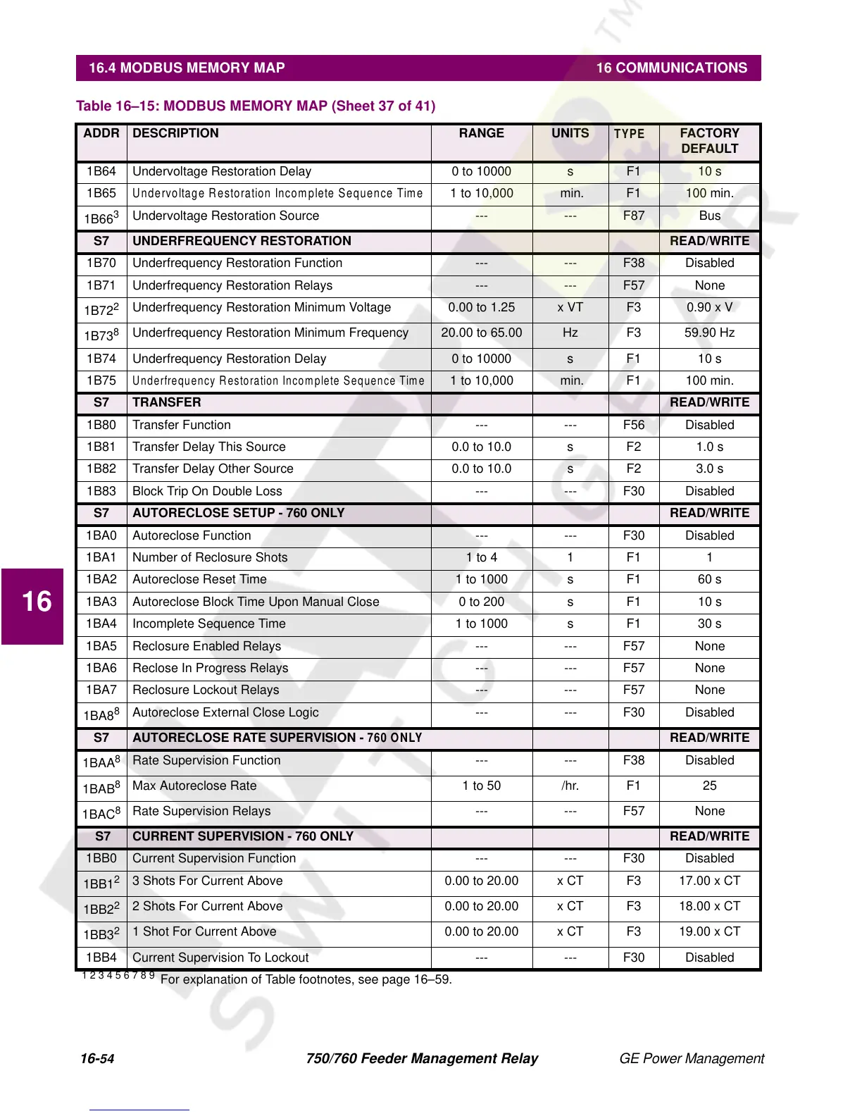 16.4 MODBUS MEMORY MAP 16 COMMUNICATIONS