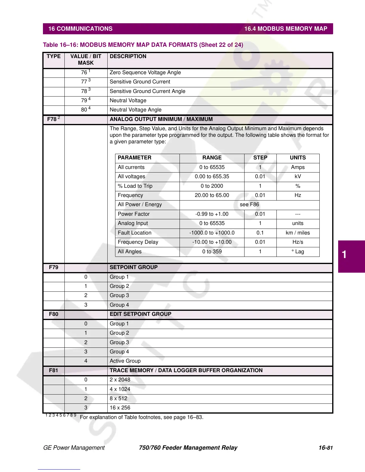 Table 16–16: MODBUS MEMORY MAP DATA FORMATS (Sheet 22 of 24)