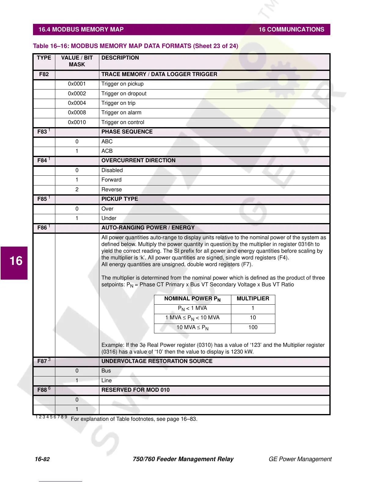 Table 16–16: MODBUS MEMORY MAP DATA FORMATS (Sheet 23 of 24)
