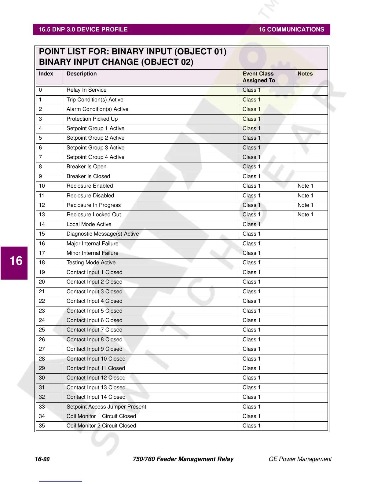 16.5 DNP 3.0 DEVICE PROFILE 16 COMMUNICATIONS