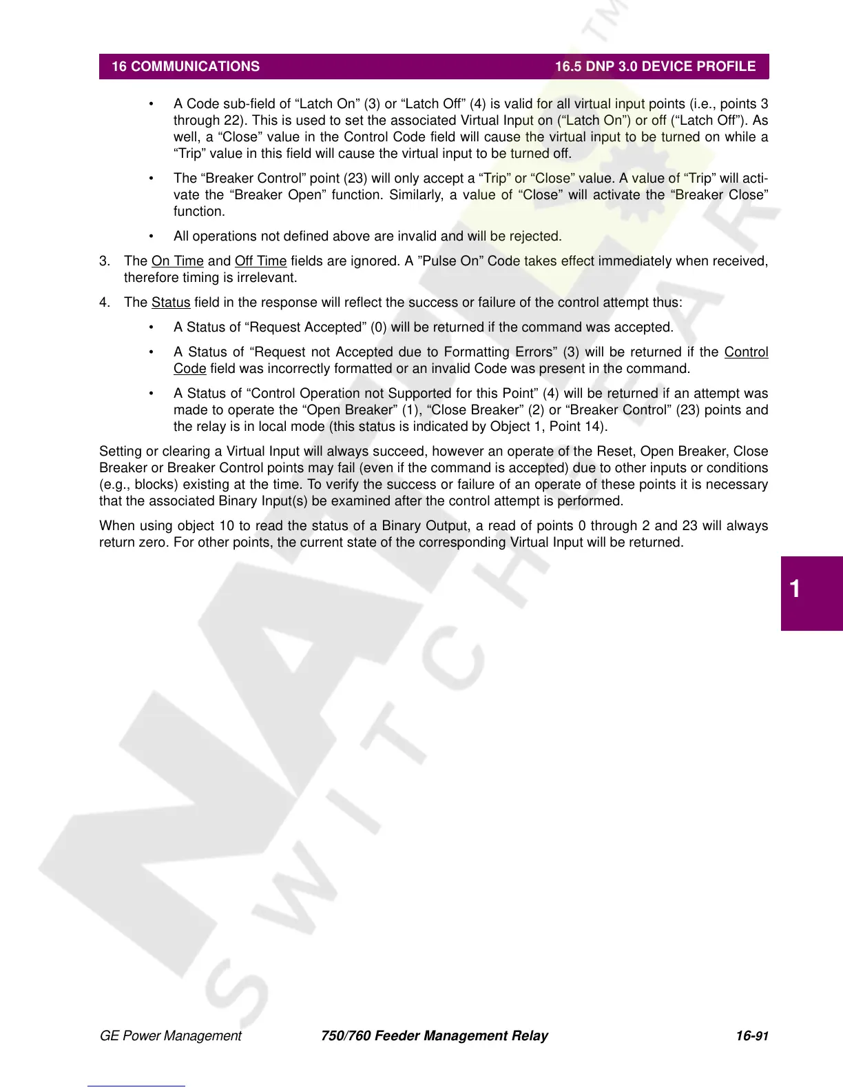 16 COMMUNICATIONS 16.5 DNP 3.0 DEVICE PROFILE
