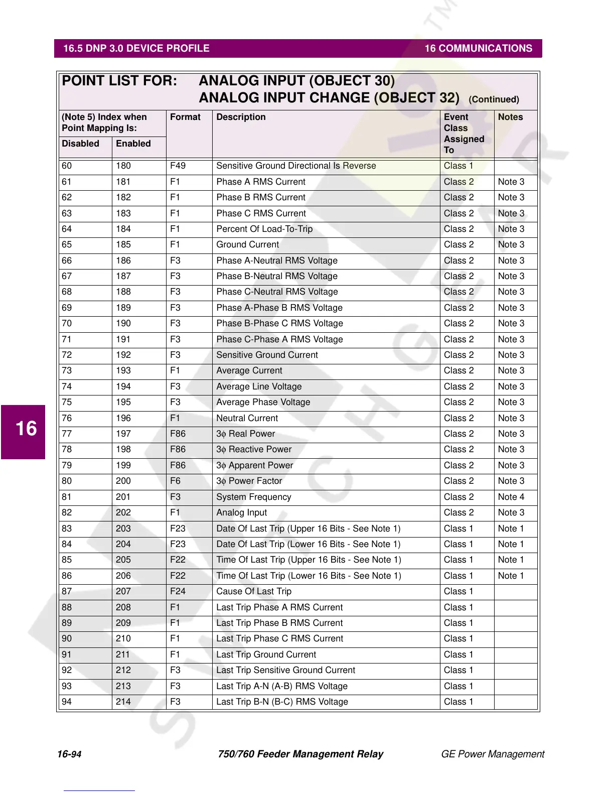 16.5 DNP 3.0 DEVICE PROFILE 16 COMMUNICATIONS