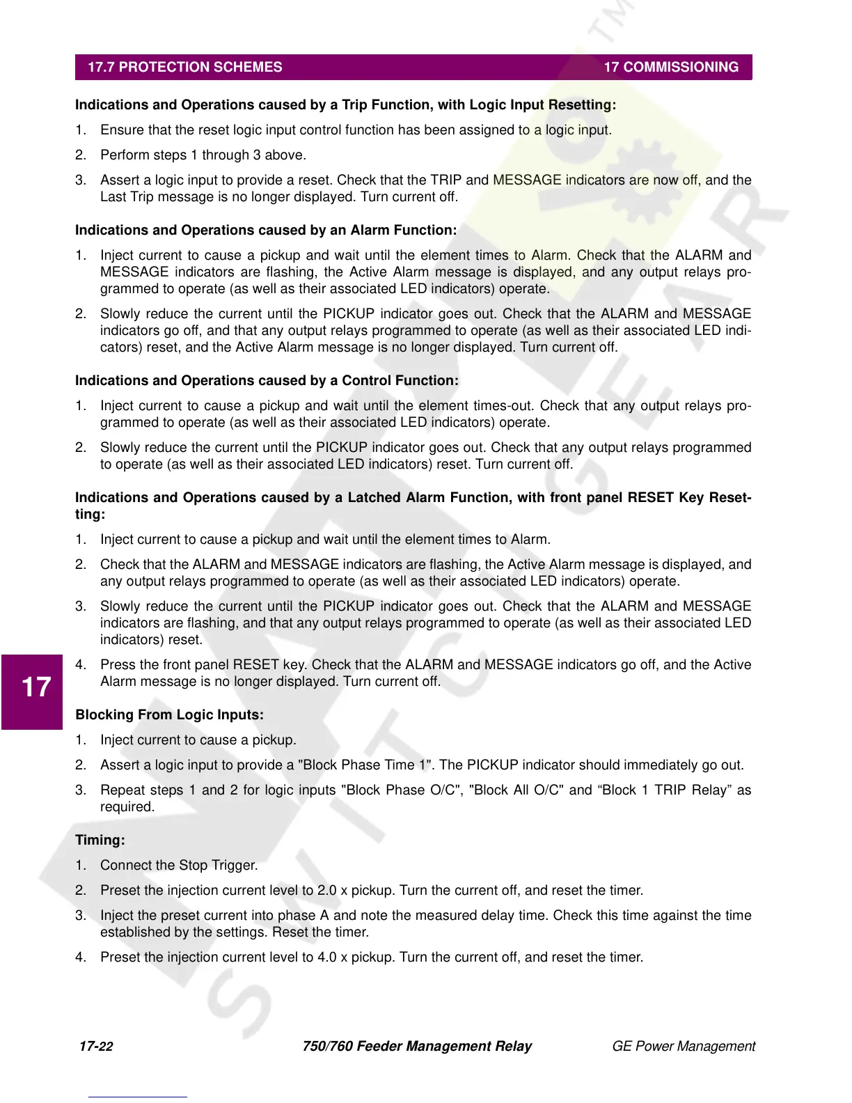 17.7 PROTECTION SCHEMES 17 COMMISSIONING