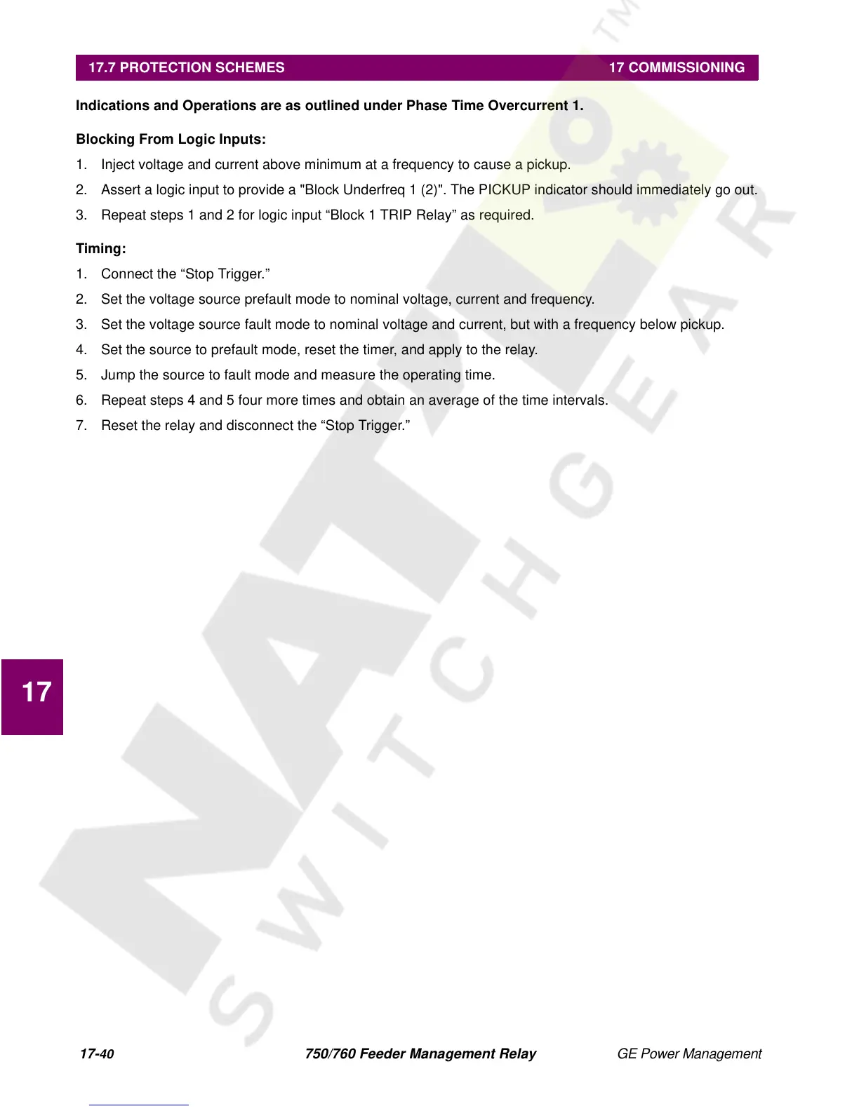 17.7 PROTECTION SCHEMES 17 COMMISSIONING