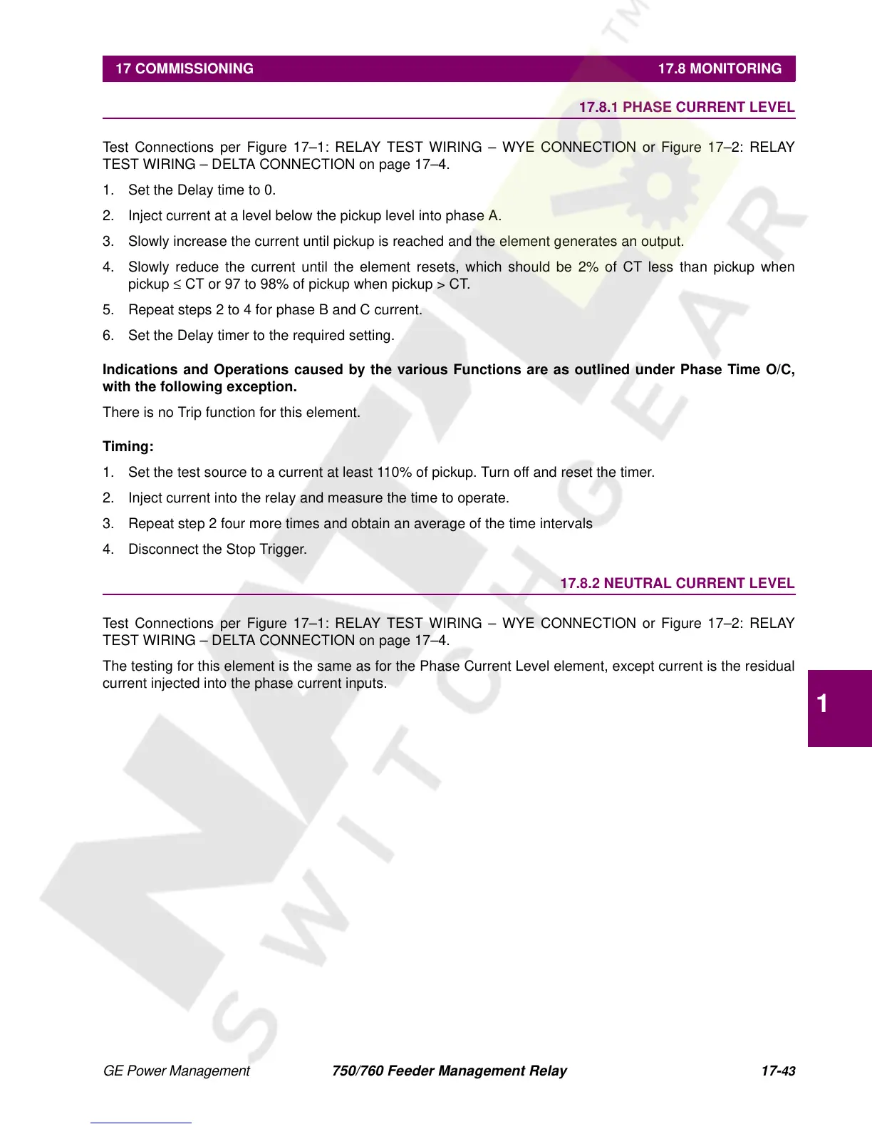 17.8 MONITORING 17.8.1 PHASE CURRENT LEVEL