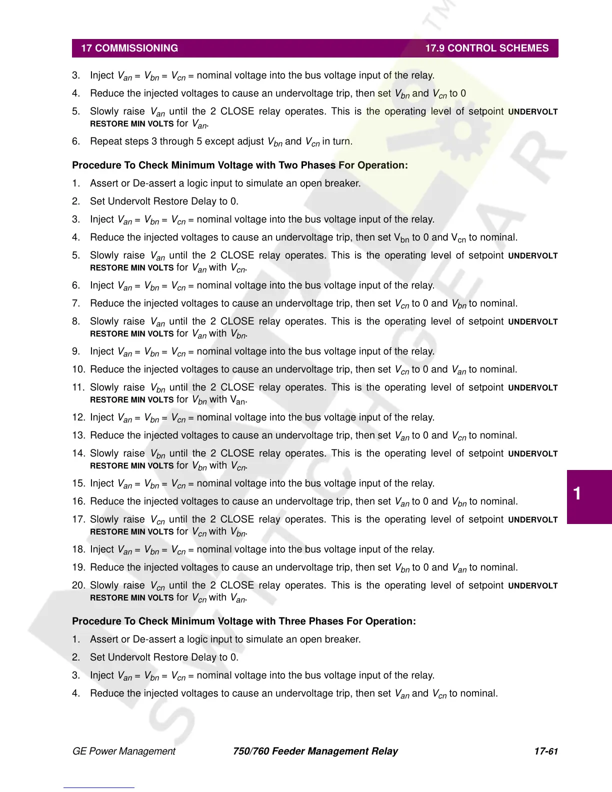 16. Reduce the injected voltages to cause an undervoltage trip, then set
