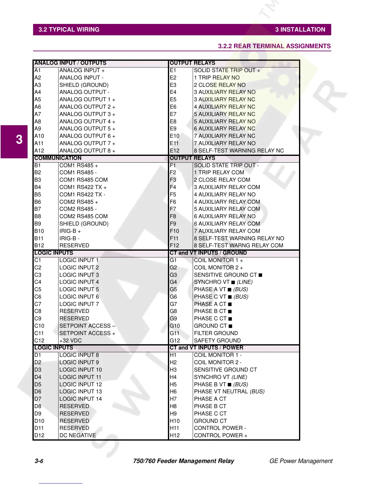 3.2.2 REAR TERMINAL ASSIGNMENTS