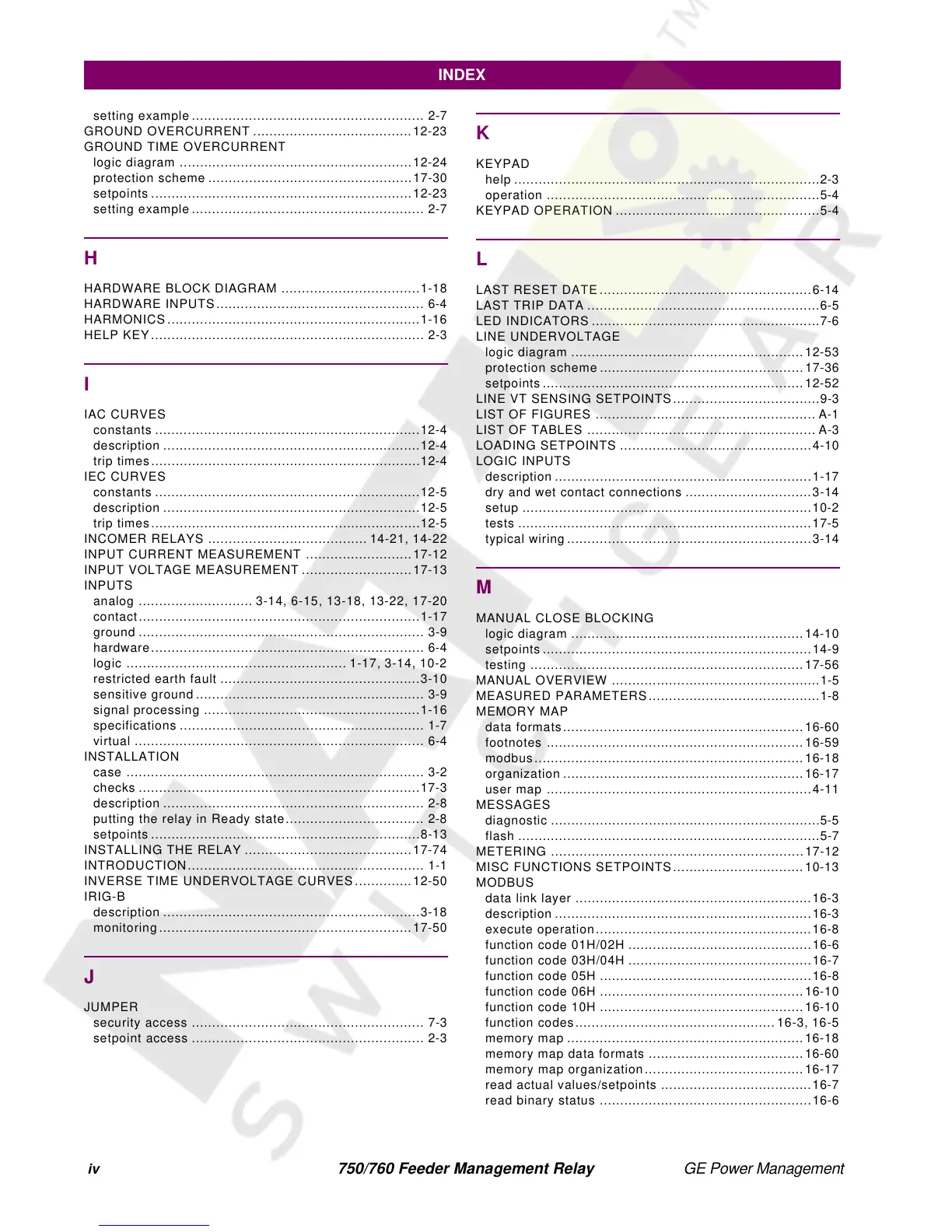 INVERSE TIME UNDERVOLTAGE CURVES..............12-50