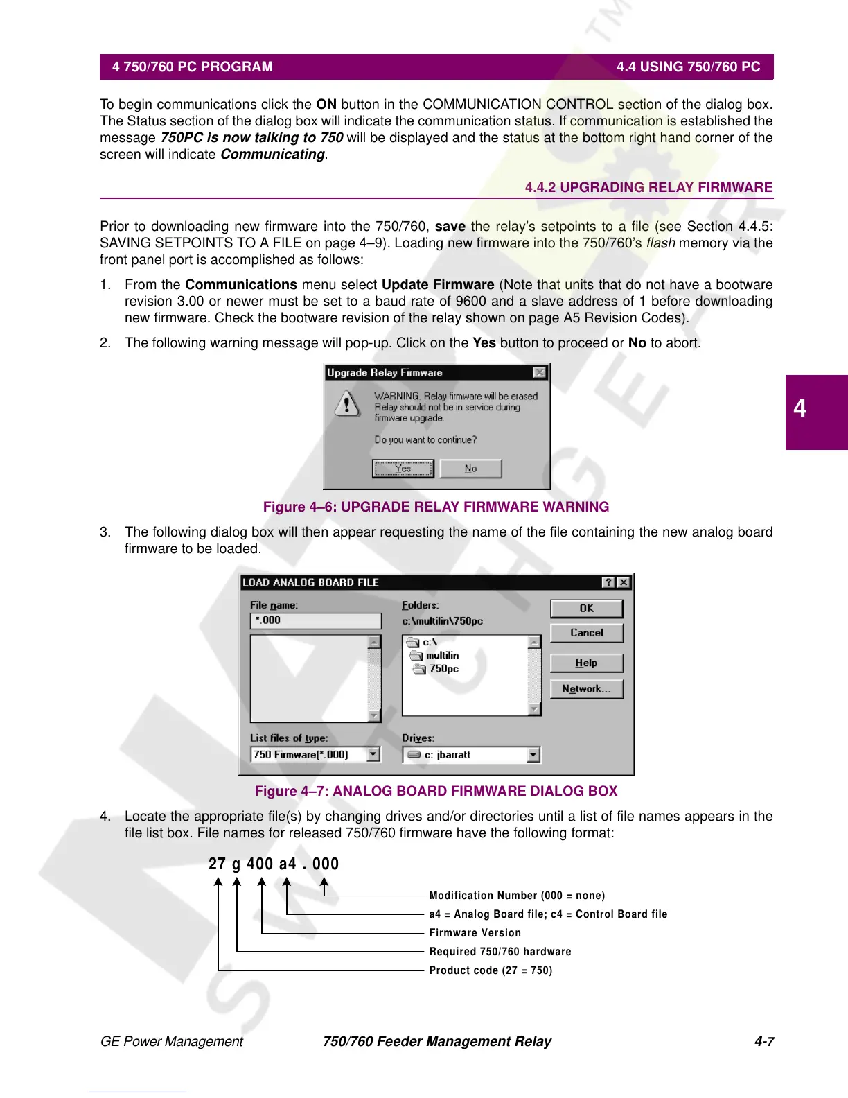SAVING SETPOINTS TO A FILE on page 4–9). Loading new firmware into the 750/760’s