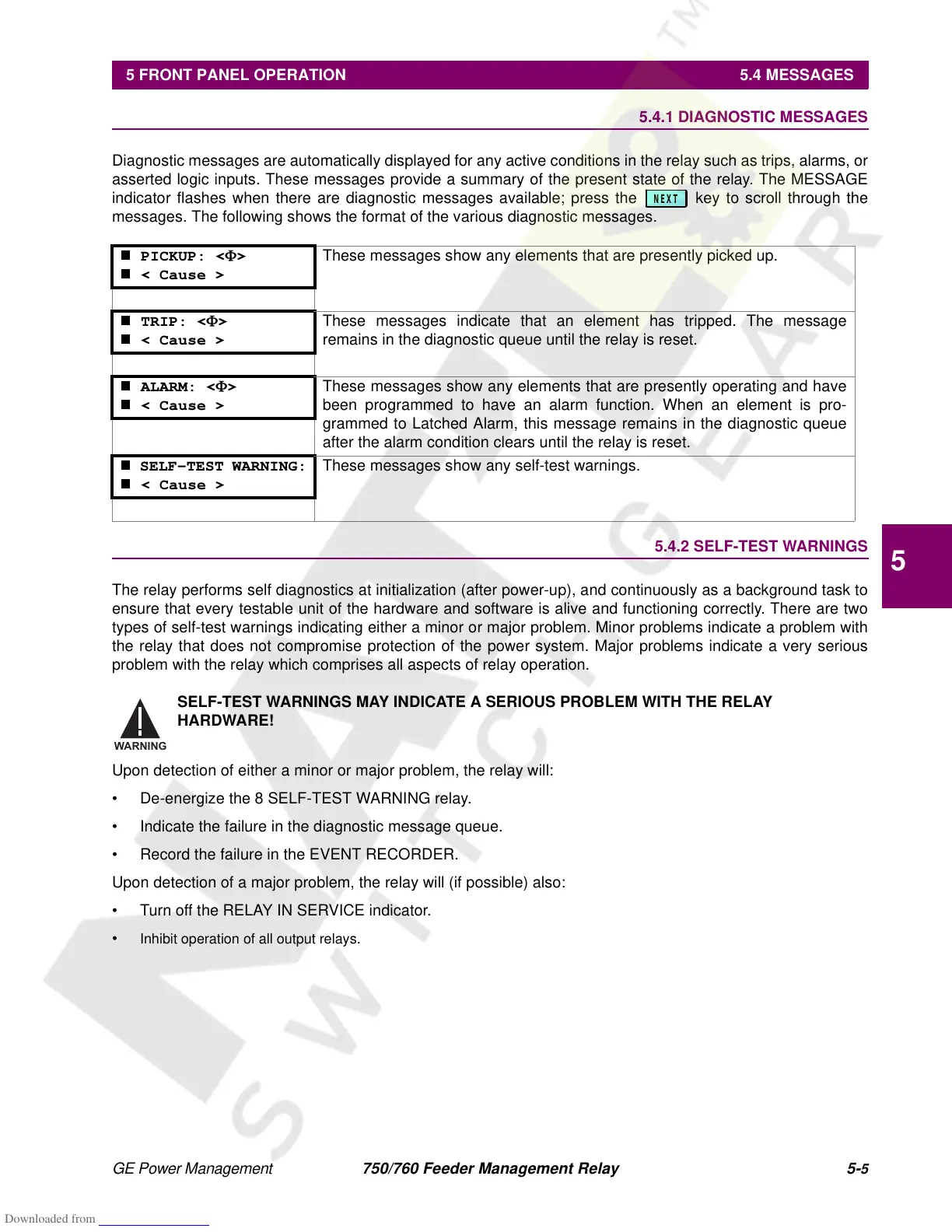5.4 MESSAGES 5.4.1 DIAGNOSTIC MESSAGES