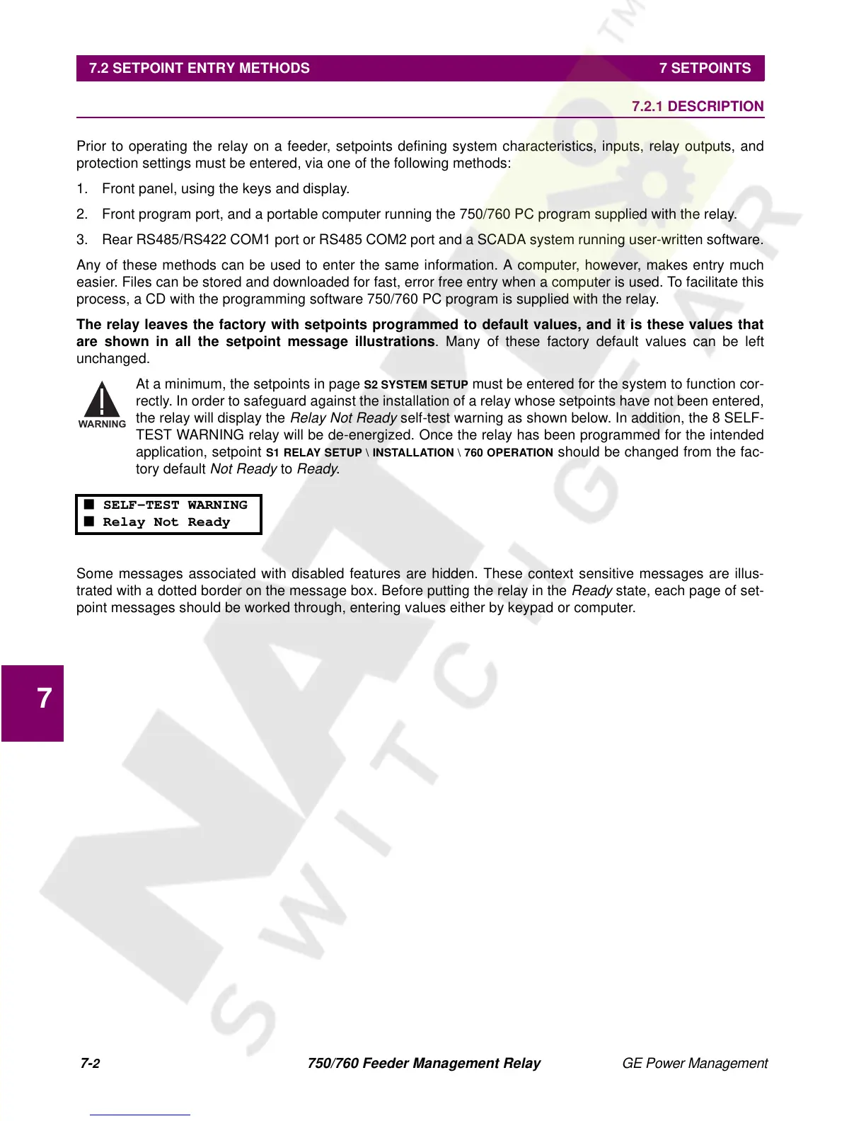7.2 SETPOINT ENTRY METHODS 7 SETPOINTS